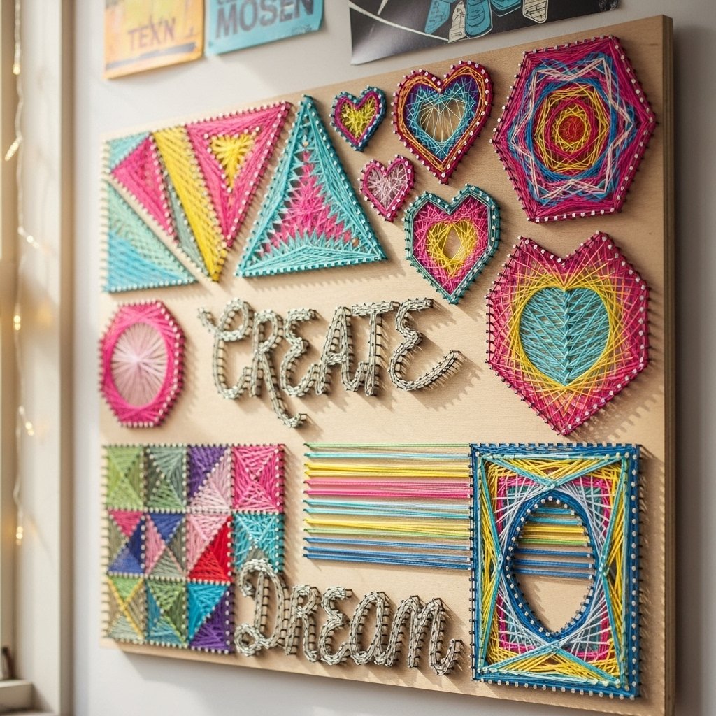 String art is a trendy way to create geometric shapes, hearts, or inspirational words on the wall. Using nails, colored thread, or yarn, teens can form their favorite patterns with minimal tools. This wall art adds texture and visual interest to a room. It’s also a fun hands-on craft project that can be customized in any color scheme. String art works well as a focal point above a bed or study desk.