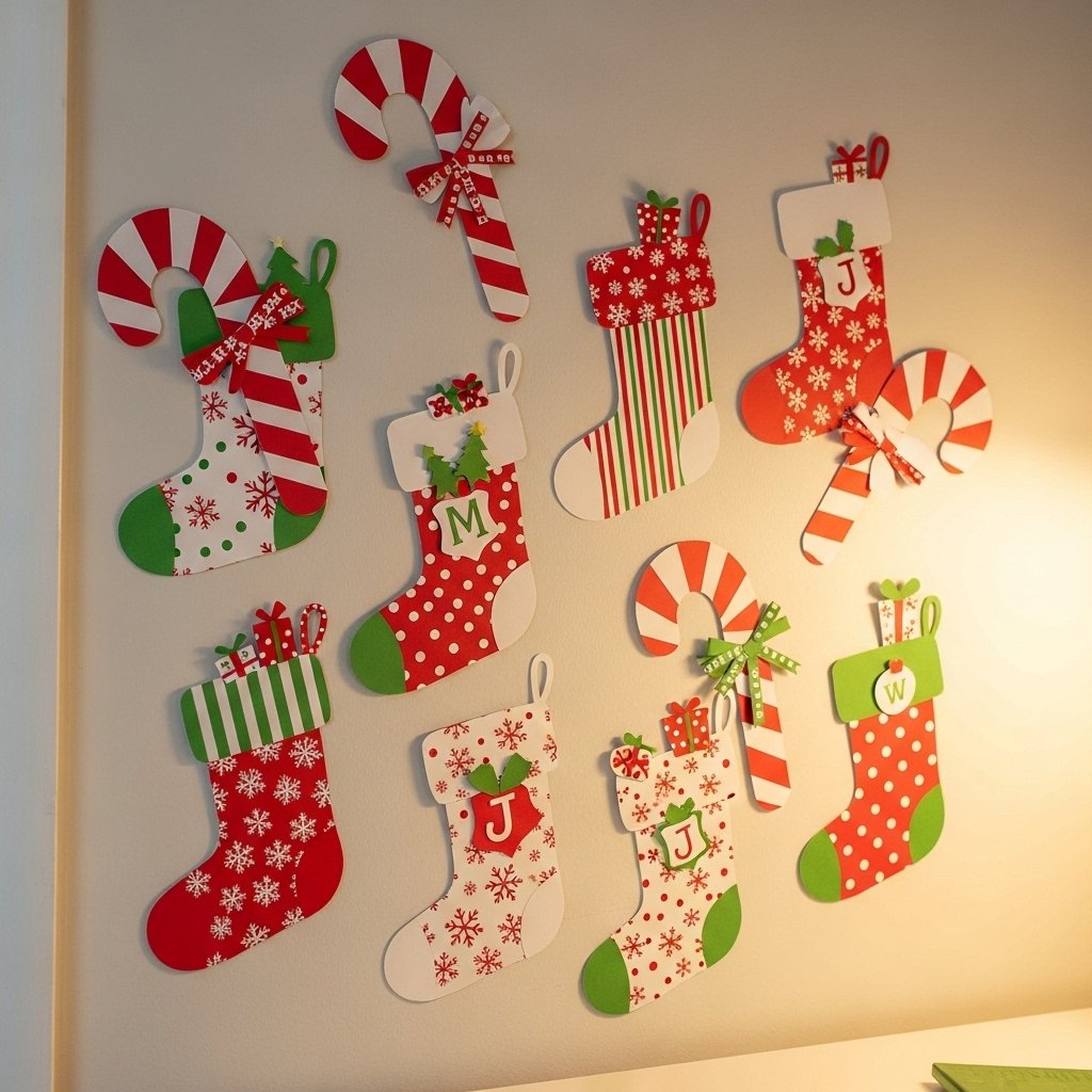 12. Paper Candy Cane and Stocking Wall Art