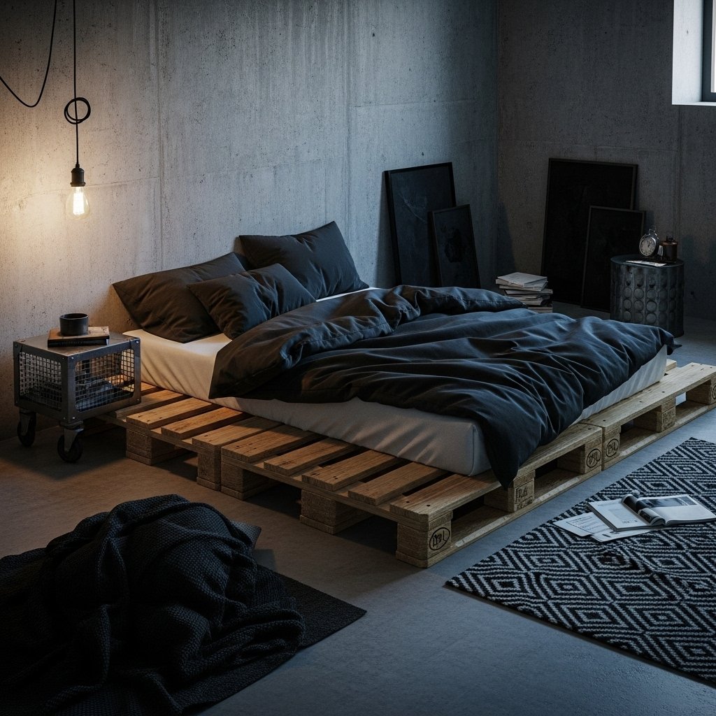 Low-floor beds create a grounded, relaxed, and slightly rebellious feel often seen in grunge-themed rooms. You can use wooden pallets to create a DIY bed frame that feels rustic and industrial. Keeping the bedding minimal and dark enhances the moody atmosphere. This setup also opens up the room, making it feel larger and more spacious. It’s an ideal combination of comfort, affordability, and style.