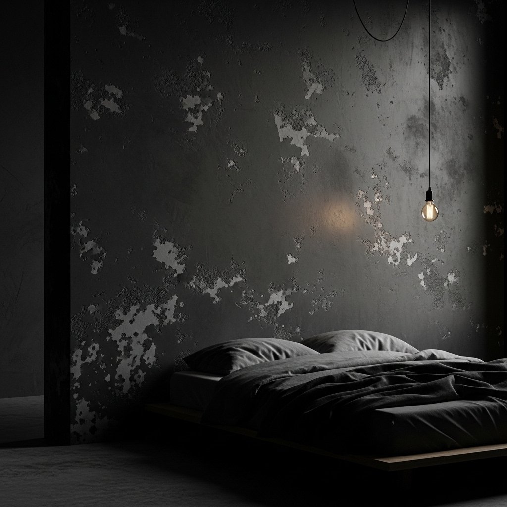 A distressed wall instantly sets the tone for a grunge-inspired bedroom. You can use sandpaper, sponges, or dry brushing techniques to create a rough, worn-out effect. Mixing shades of gray, black, and deep browns adds depth and moodiness to the room. This DIY approach allows you to customize the level of distress to match your style. The result is a backdrop that feels raw, artistic, and undeniably grunge.