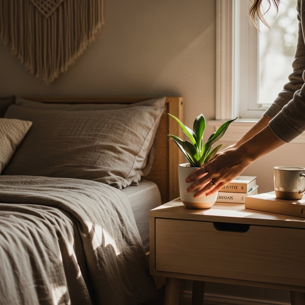 Plants bring life, freshness, and natural color to a cozy aesthetic bedroom. Small potted plants, hanging vines, or dried flowers fit perfectly with this style. They create a peaceful environment and help balance the soft textures in the room. Even low-maintenance plants like snake plants or pothos can make a big difference. Adding greenery enhances the aesthetic while keeping the space calm and refreshing.