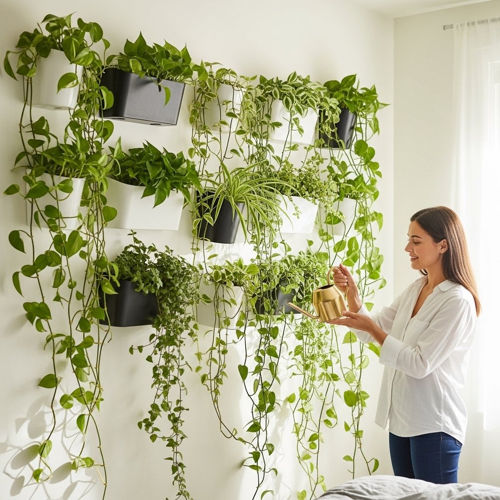 Adding greenery to the wall brings nature into your space and enhances the room’s freshness. You can use wall-mounted planters, shelf plants, or hanging vines like pothos and ivy. Artificial vines are also a great low-maintenance option if you prefer no upkeep. Greenery softens the room and adds an organic, aesthetic touch that feels calming and lively.