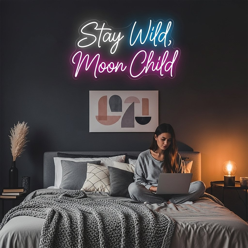 Neon signs have become a popular trend for creating a modern and aesthetic bedroom wall. Signs with motivational quotes, names, or minimal shapes add personality and a stylish glow to the room. They pair beautifully with gallery walls, mirrors, or simple painted walls. This décor idea makes your room feel trendy, expressive, and visually striking.