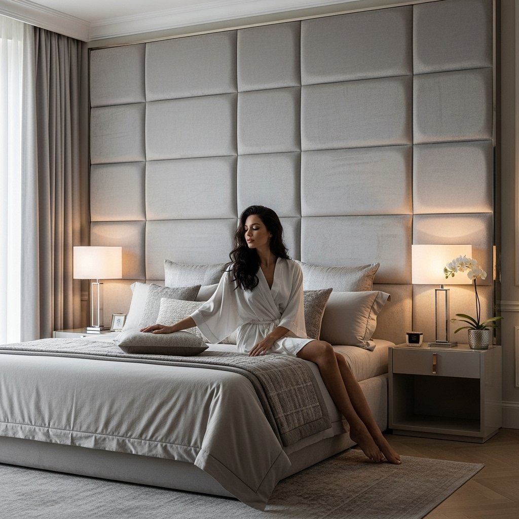 For a luxurious and cozy look, apply padded or upholstered panels behind your bed. Soft fabric panels in velvet, suede, or linen create a comfortable headboard wall that enhances relaxation. Choose neutral tones for a modern look or bold hues for a design statement. This idea makes your bedroom feel high-end and cozy at the same time.