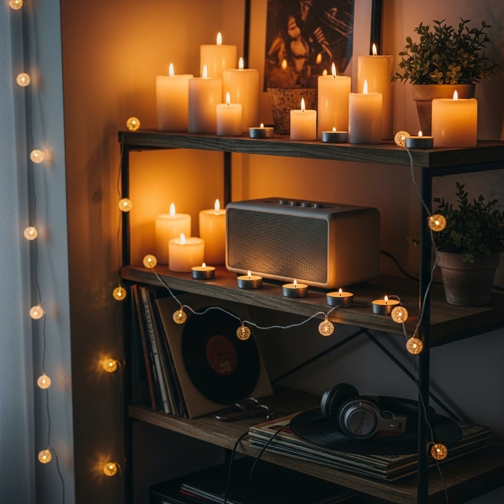 Candlelight is one of the most romantic elements you can add to a couple’s bedroom birthday décor. Use flameless LED candles for safety while keeping the warm glow. Arrange them on shelves, nightstands, or around the sitting area to create an intimate setting. Mixing candle heights adds depth and elegance to the décor. This candlelit corner becomes a perfect spot for cuddling, talking, or sharing birthday wishes.
