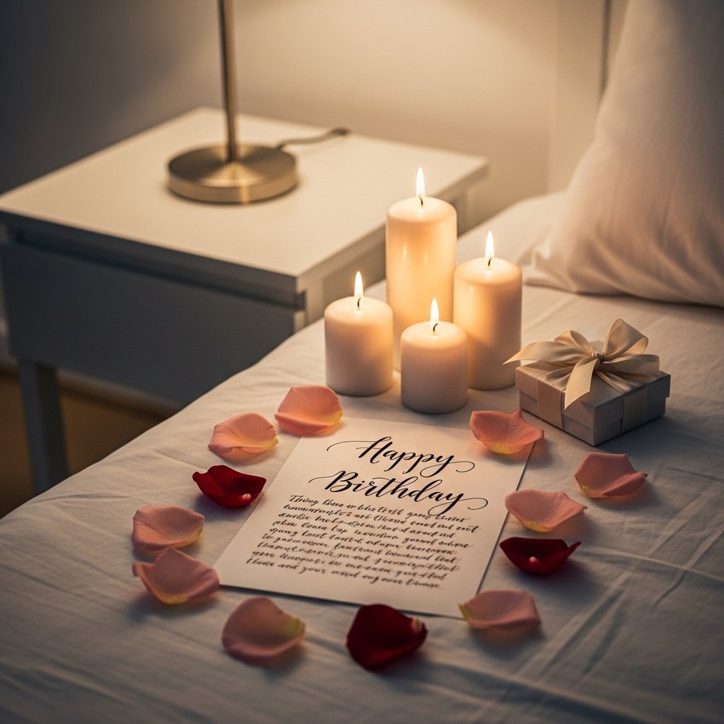 A personal note or letter adds the emotional touch that every birthday celebration needs. Write something heartfelt about your love, memories, and wishes for your partner. Place it on the pillow, dessert table, or next to the gift for a sweet surprise. A handwritten message feels intimate and thoughtful in a way that décor alone cannot express. This final detail leaves a lasting impression your partner will cherish.