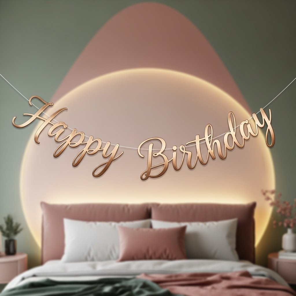 A stylish birthday banner adds a personal and celebratory touch to the room. You can choose metallic, wooden, or fabric banners depending on your theme. Hang it above the bed, behind the sitting area, or on a blank wall to complete the birthday décor. Make sure the banner matches your color palette for a cohesive look. This simple addition brings a clear birthday message while keeping the room visually appealing.