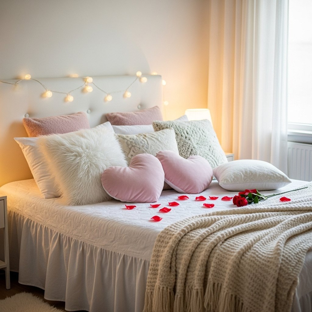 The bed should be the highlight of your birthday décor, and enhancing its appearance makes the celebration more romantic. Use fresh, soft bedding in white, beige, or pastel tones to create a clean and luxurious look. Add decorative cushions, fluffy throws, and heart-shaped pillows for extra charm. You can even arrange rose petals or LED lights around the headboard. A beautifully decorated bed creates a welcoming and dreamy centerpiece for the celebration.
