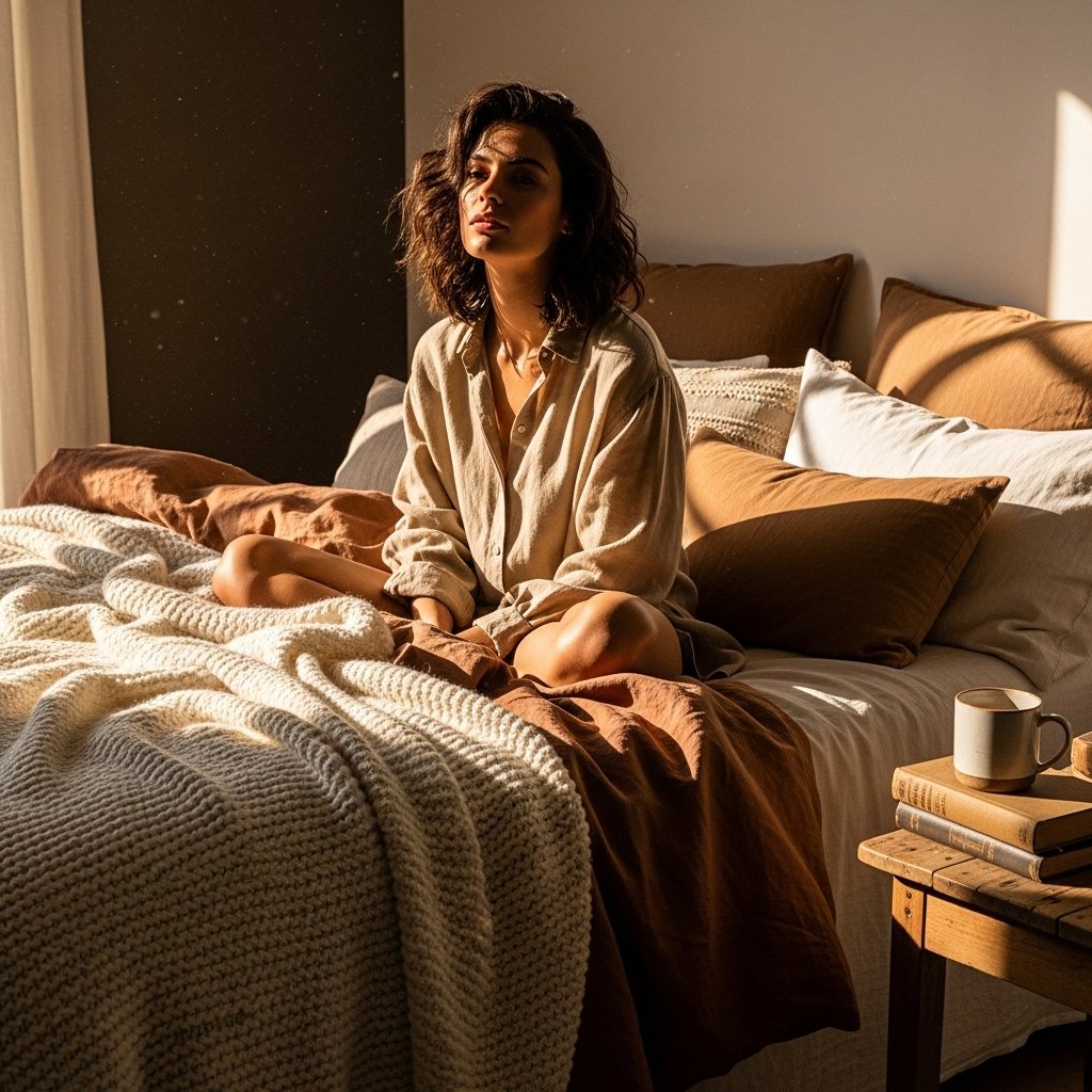 Blankets are a cozy bedroom must-have because they add warmth and texture. Place them on the bed, at the foot of the mattress, or on a chair for easy access. Choose knit, fleece, or faux fur throws to match the cozy theme. Their soft feel adds comfort whether you’re relaxing, reading, or resting. These small, layered details elevate the warm atmosphere of the room.