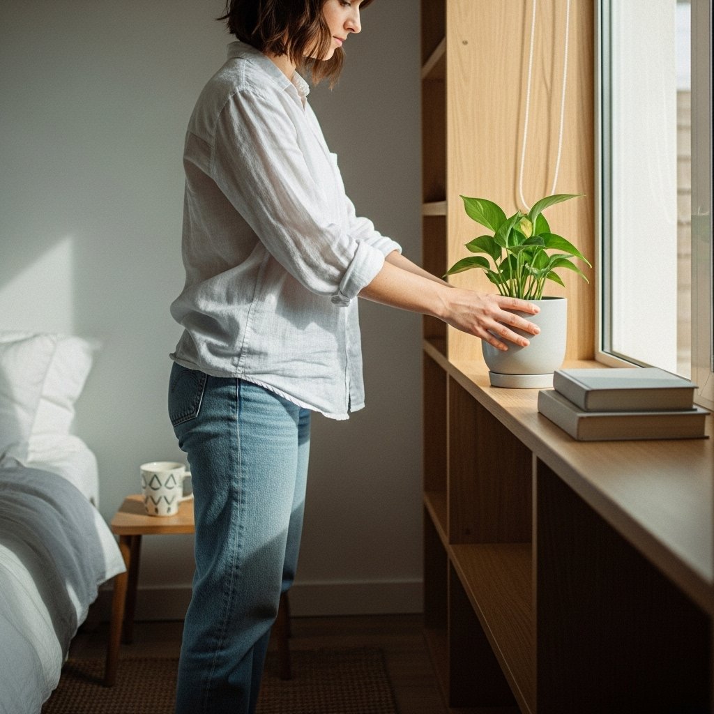 A small plant can make a big difference in a simple bedroom. Greenery adds life, freshness, and a natural pop of color without overwhelming the space. Choose low-maintenance plants like snake plants, pothos, or succulents. Place them on a windowsill, nightstand, or corner shelf for subtle charm. Plants keep the room feeling clean, bright, and lively.