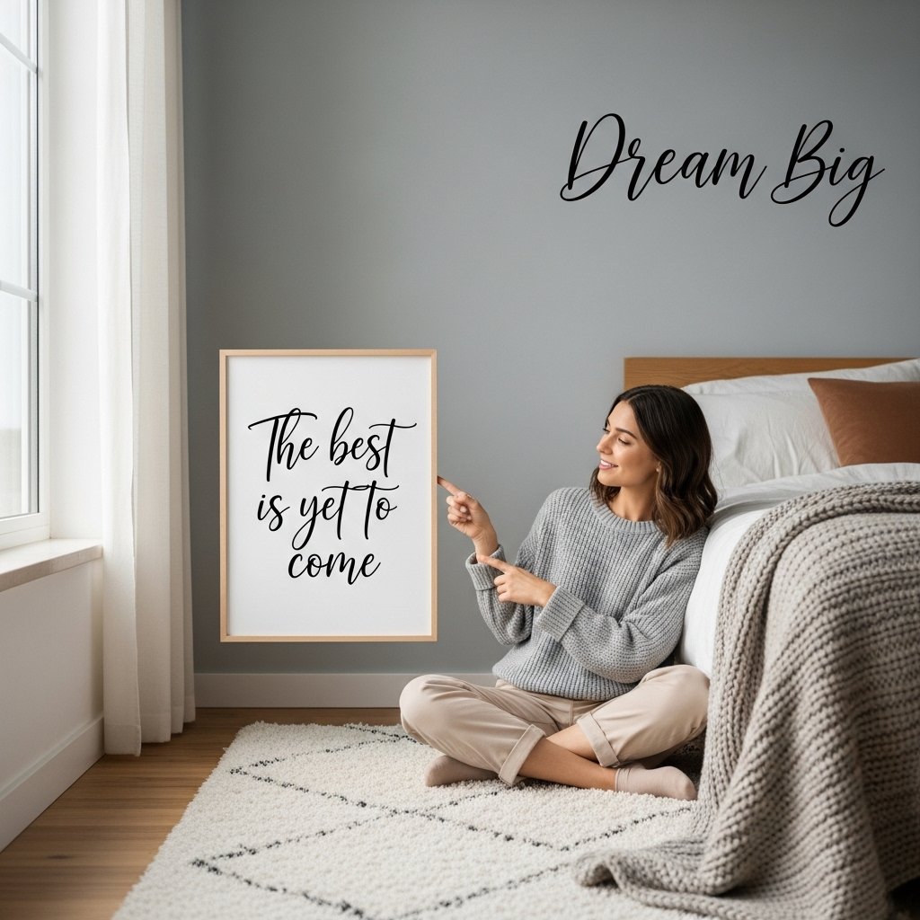 Adding inspirational quotes or word art to your bedroom wall brings positivity and personality. You can choose framed quotes, wooden lettering, or vinyl decals. Keep the colors neutral or soft to maintain a calming bedroom atmosphere. Place word art above the bed, near a mirror, or on a reading corner wall. This décor idea creates a motivational and uplifting environment.