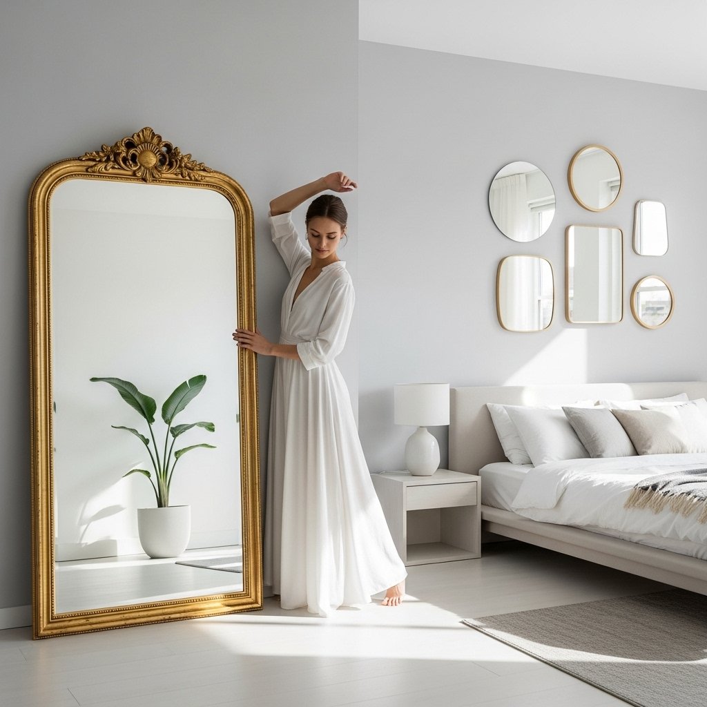 Mirrors are perfect for bedroom walls because they reflect light and create the illusion of a larger space. You can choose one oversized mirror or a collection of smaller decorative ones. Placing a mirror opposite a window enhances brightness and opens up the room visually. Mirror frames in gold, white, or wooden tones add extra style. This simple addition transforms your bedroom into a brighter and more spacious retreat.