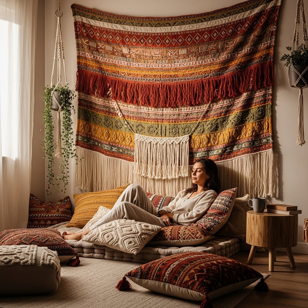 | 1.7. Hang Tapestries or Fabric Art for a Cozy Boho Touch |
