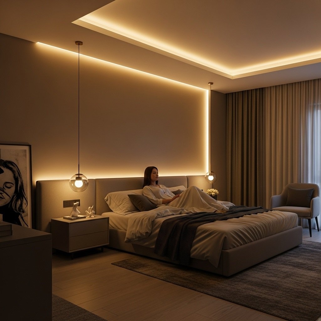 Lighting is one of the most transformative décor elements in a bedroom. LED strip lights installed behind headboards, under shelves, or along the ceiling add a stylish modern glow. Soft warm tones create a relaxing nighttime atmosphere, while color-changing LEDs allow for customized moods. Combine LED lights with table lamps, wall sconces, or fairy lights to build multi-layered lighting. This idea helps your bedroom feel cozy, innovative, and visually appealing.