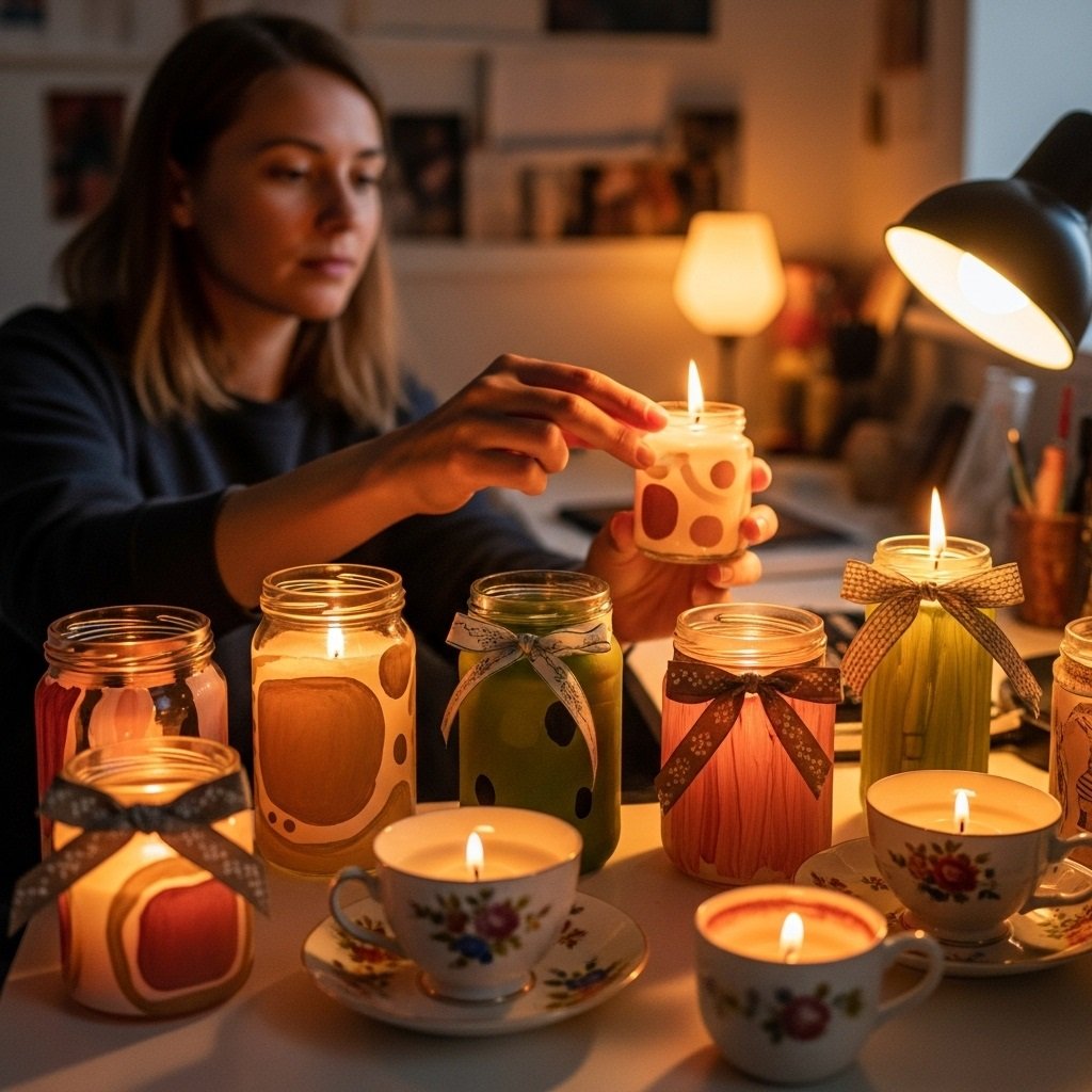 Candles instantly make a room feel cozy and inviting, and DIY holders add a personalized touch. Use glass jars, small bowls, or teacups as bases. Decorate with paint, glitter, or ribbons to match your room’s aesthetic. Scented or colored candles enhance both the look and ambiance. This project is simple, affordable, and provides both function and style.