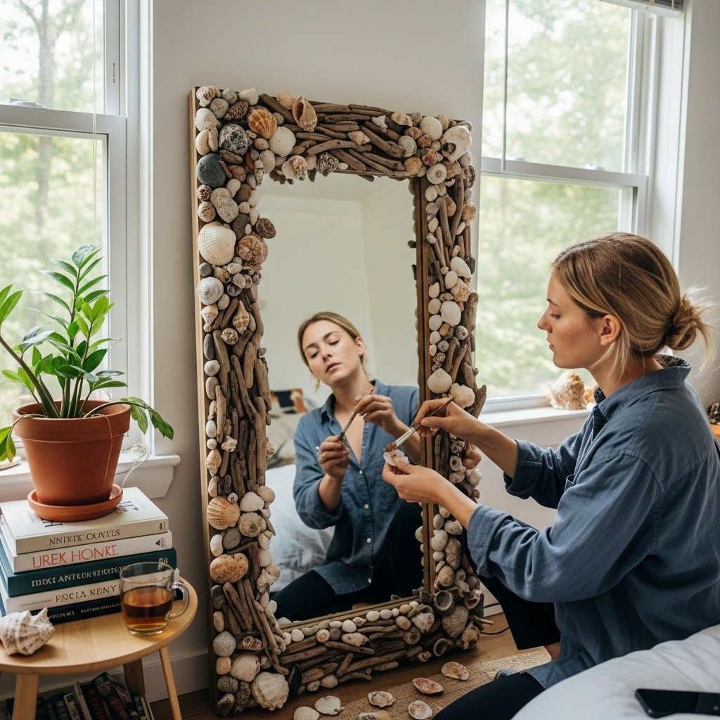 Give a plain mirror a fresh new look with a handmade frame. Use wood, sticks, shells, or even cardboard to create a unique design. Paint, stain, or decorate the frame to coordinate with your room décor. A stylish mirror frame enhances the room’s aesthetic while making the space appear larger and brighter. This DIY idea is practical, decorative, and visually striking.