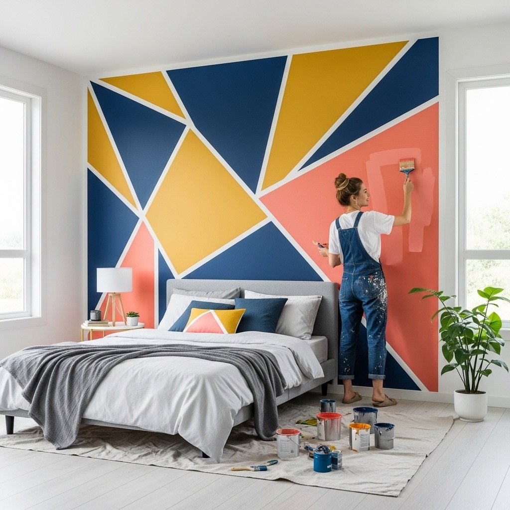 Instead of buying wallpaper, try painting your own accent wall. You can use geometric patterns, stripes, or stencil designs to create a unique focal point. Chalkboard or magnetic paint adds functionality and fun to a bedroom or study space. Painting allows complete control over colors and design, making your accent wall truly one-of-a-kind. This DIY idea is bold yet achievable and instantly transforms your space.
