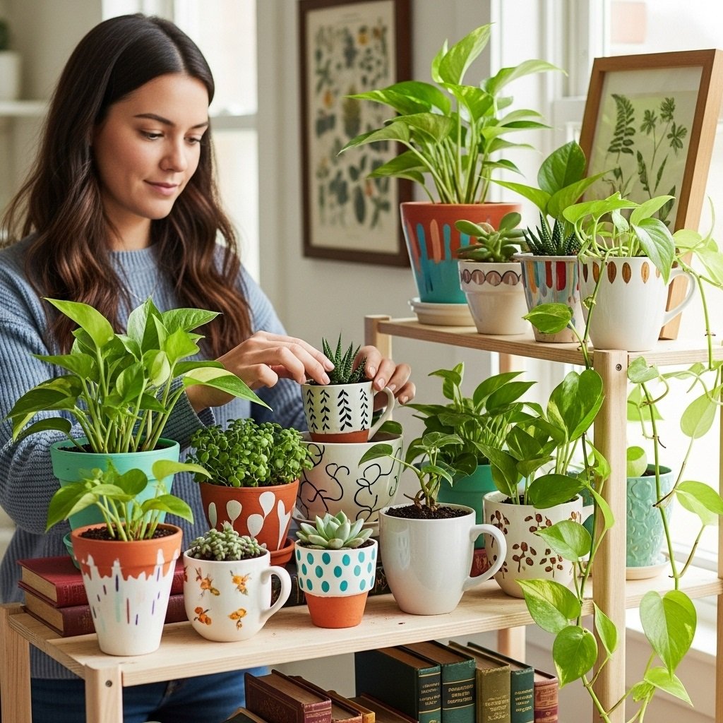 Bring natural greenery into your room with DIY planters. Use terracotta pots, tin cans, or even old mugs as containers for plants. Paint or decorate them to match your room’s theme. Hanging planters or wall-mounted plant holders are great for small spaces. This project is practical, stylish, and adds a fresh, natural vibe to any room.
