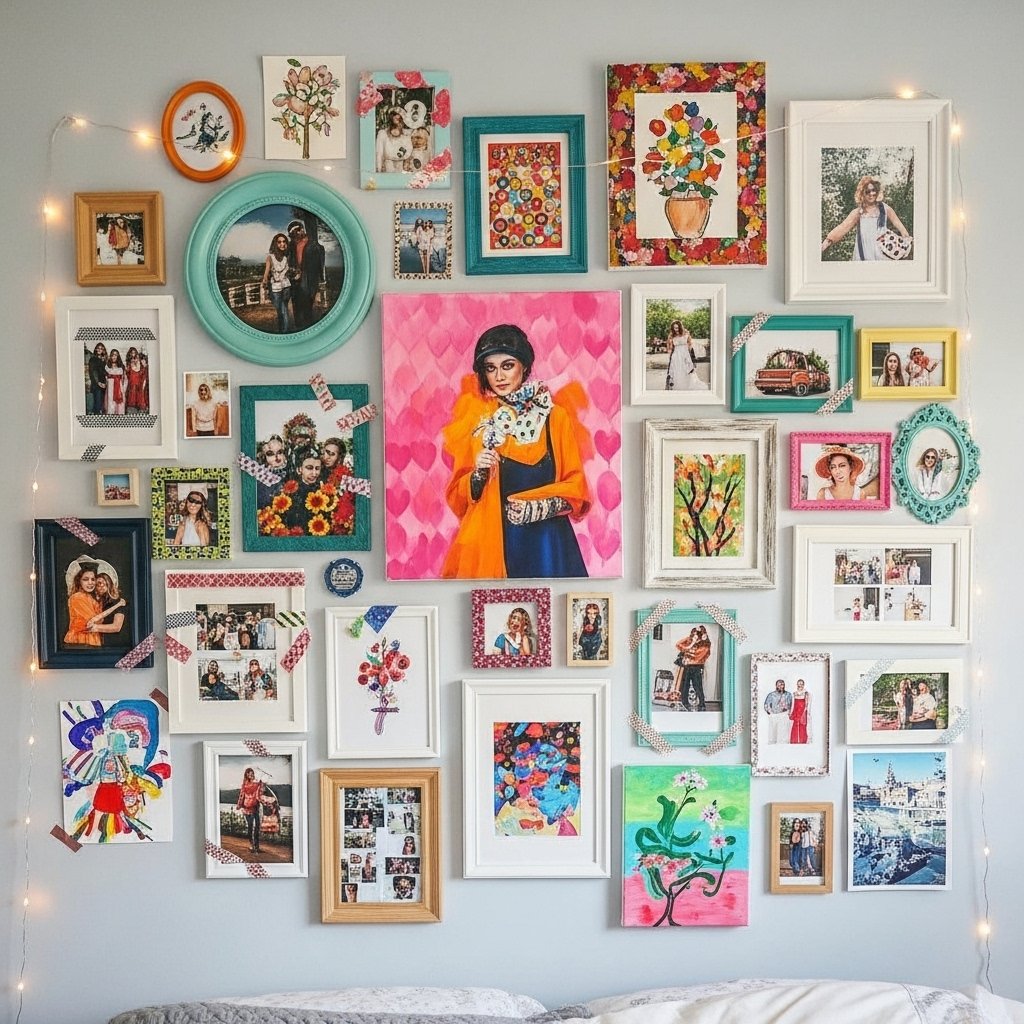 A gallery wall is an easy and fun way to personalize a teen girl’s room. Use photos, posters, hand-painted canvases, or framed quotes for a unique display. You can mix and match sizes and shapes to create a dynamic, eye-catching layout. Washi tape or removable hooks allow easy arrangement without damaging walls. This DIY wall art instantly makes the room feel curated, colorful, and lively.