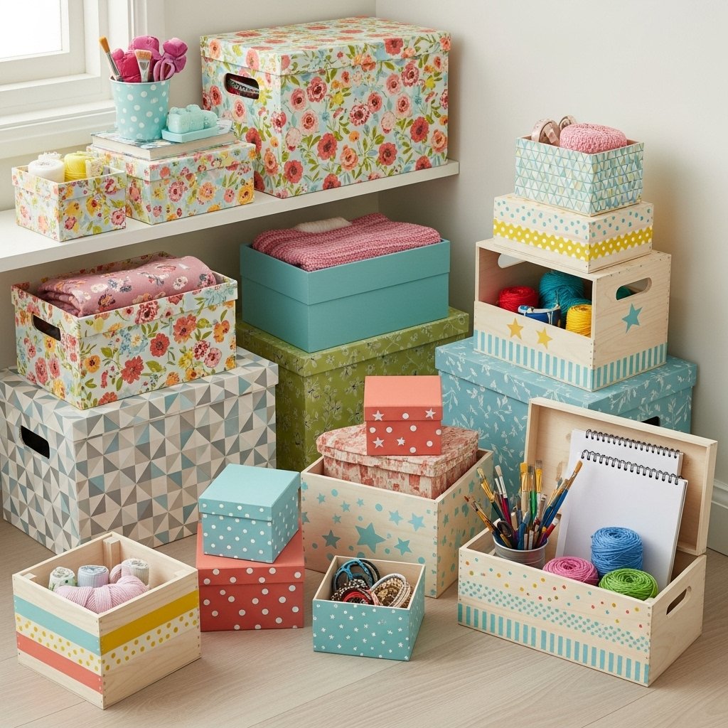 Storage doesn’t have to be boring—DIY storage boxes can be stylish and fun. Cover cardboard boxes with fabric, paper, or paint to match the room’s color scheme. Use them for clothes, accessories, or craft supplies while keeping the room neat. Personalized storage adds both functionality and charm to the bedroom. This DIY solution helps teens maintain organization without compromising creativity.