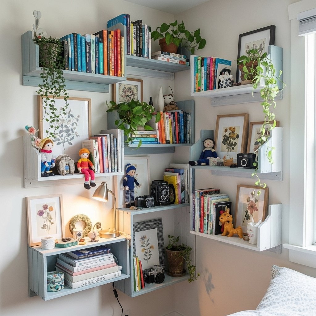 Floating shelves are both functional and decorative, perfect for small rooms. Teens can paint or decorate wooden boards to match their room theme. Use shelves to display books, collectibles, plants, or DIY crafts. These shelves add vertical storage, keeping surfaces clutter-free while showcasing personal items. A creative DIY shelf setup instantly elevates the style of the bedroom.