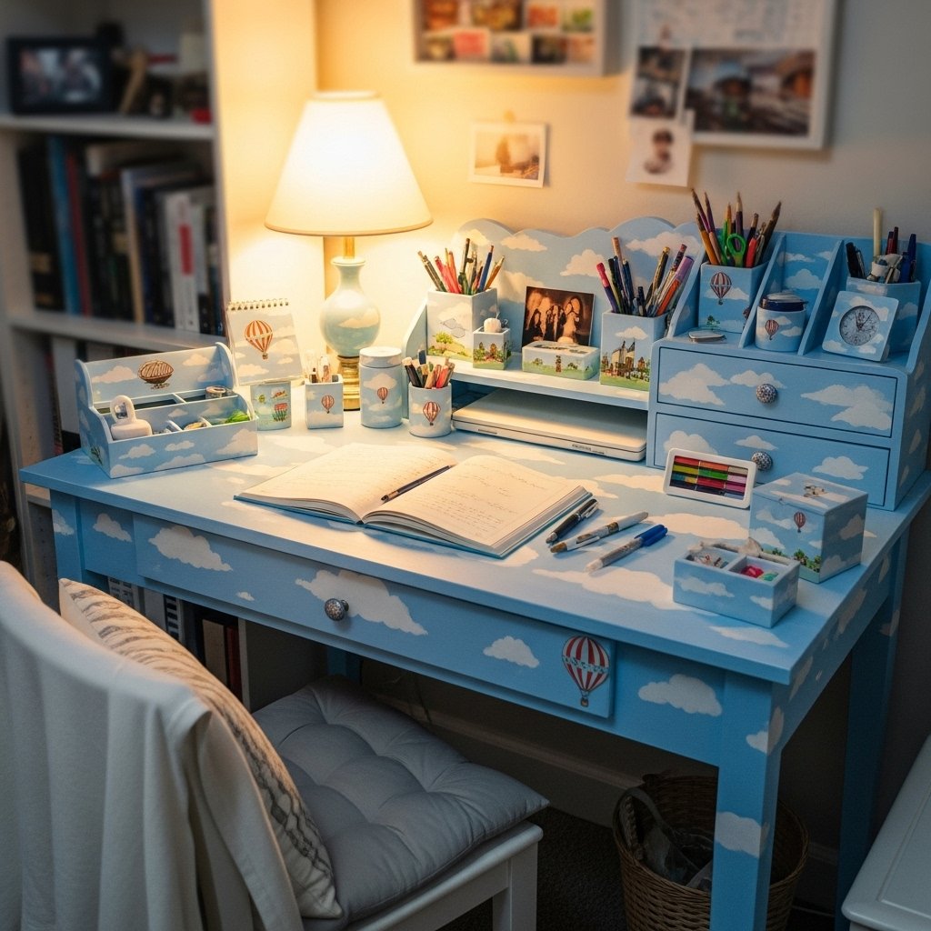 A DIY desk corner encourages productivity while keeping the space stylish. Customize a desk with paint, decals, or hand-painted patterns. Add matching organizers, pen holders, and small décor items that reflect her favorite colors. Creating a comfortable and inspiring study space helps make homework or creative projects more enjoyable. Personal touches on the desk make it a key feature in the bedroom’s design.