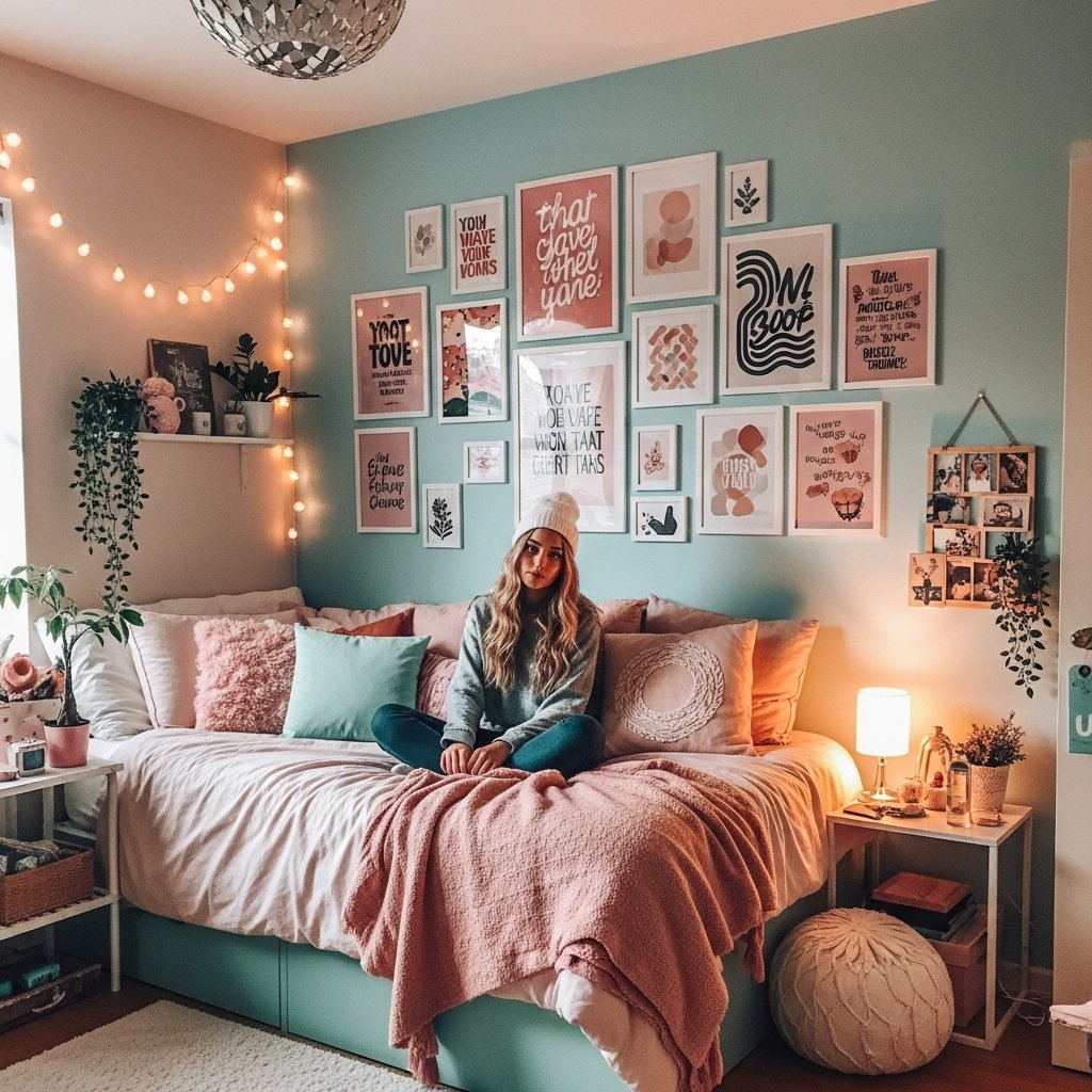 Wall art is one of the easiest ways for teens to personalize their room. Posters, digital prints, decals, or framed artwork can instantly create a stylish atmosphere without large renovations. Teens can choose themes that fit their tastes, such as music, travel, gaming, fashion, or motivational quotes. A gallery wall layout allows multiple pieces to be displayed in a clean, organized style. This idea adds creativity and personality while keeping the décor visually appealing.