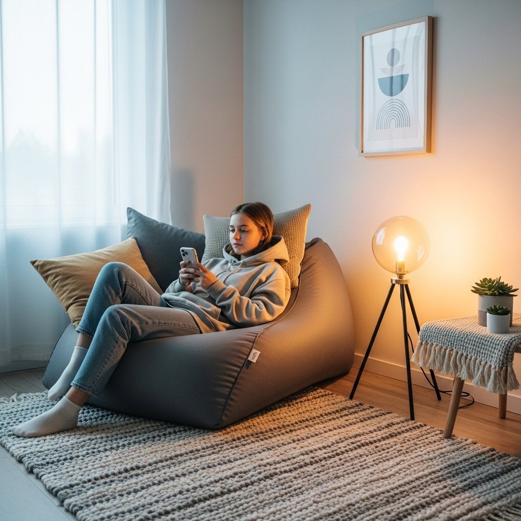 Teens often want a spot to relax, read, game, or chat with friends, making a lounge corner a great idea. Bean bags, floor cushions, a small couch, or hanging chairs can create a comfortable seating area. Adding a small side table, lamp, or rug enhances the space and makes it functional. This dedicated zone promotes relaxation while keeping the main area organized. It also makes the room feel more teen-friendly and adaptable.
