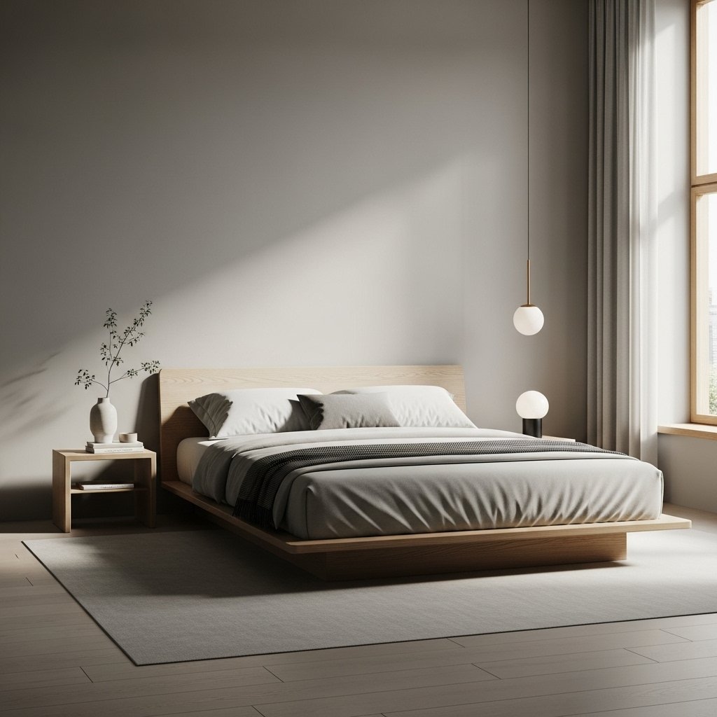 - Upgrade Lighting: Swap out harsh overhead light for warm, ambient lighting. Use a simple bedside lamp with a warm-toned bulb, or add a string of minimalist fairy lights (like copper wire) around a headboard or shelf.