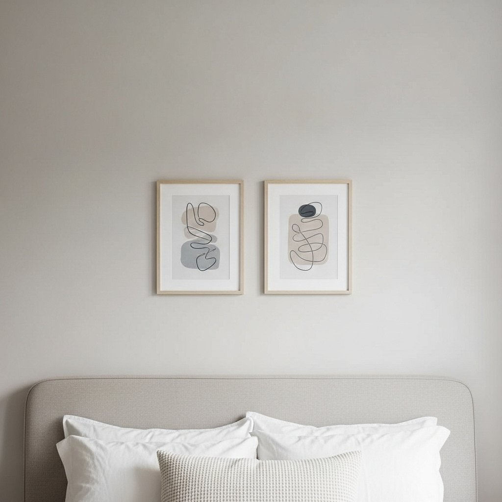 - Statement Piece: Instead of a huge gallery wall, choose one large piece of abstract or minimalist art to hang above the bed or sofa. This acts as a clear focal point.