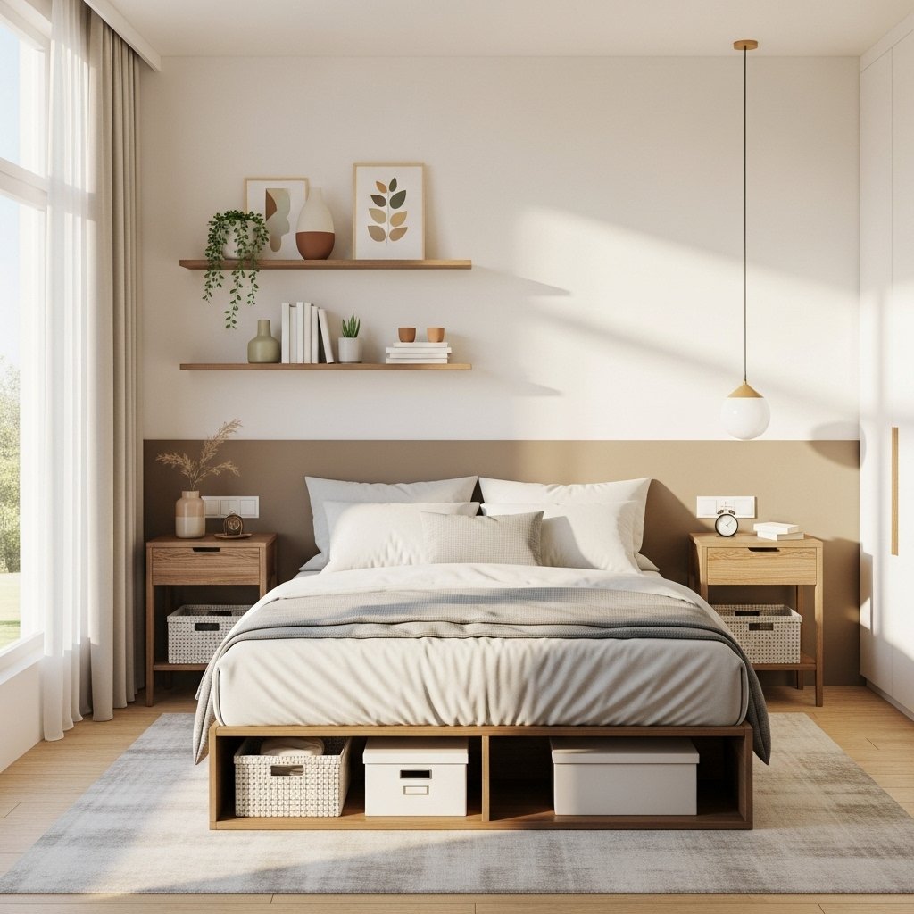 - Foundation: Choose a neutral base of 2-3 colors for your walls, large furniture, and main bedding (e.g., white, beige, light gray, or warm taupe). This creates a calm, uncluttered backdrop.