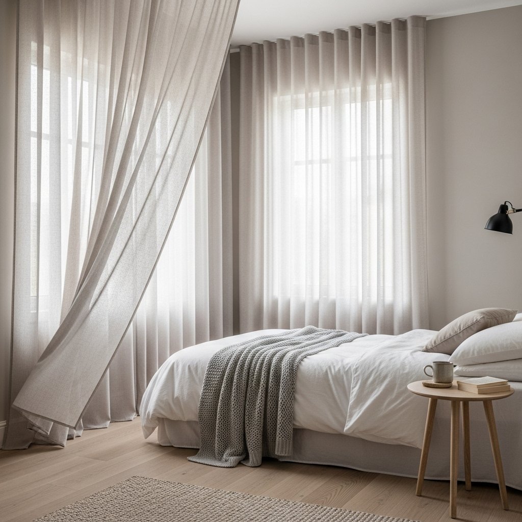 Choosing light and airy curtains enhances the simplicity of a room. White or neutral-colored curtains allow natural light to fill the space while creating a soft and calm ambiance. Avoid heavy fabrics that block light or add unnecessary visual weight. Sheer or linen curtains add texture and elegance without cluttering the design. This small change creates a bright, open, and fresh environment.