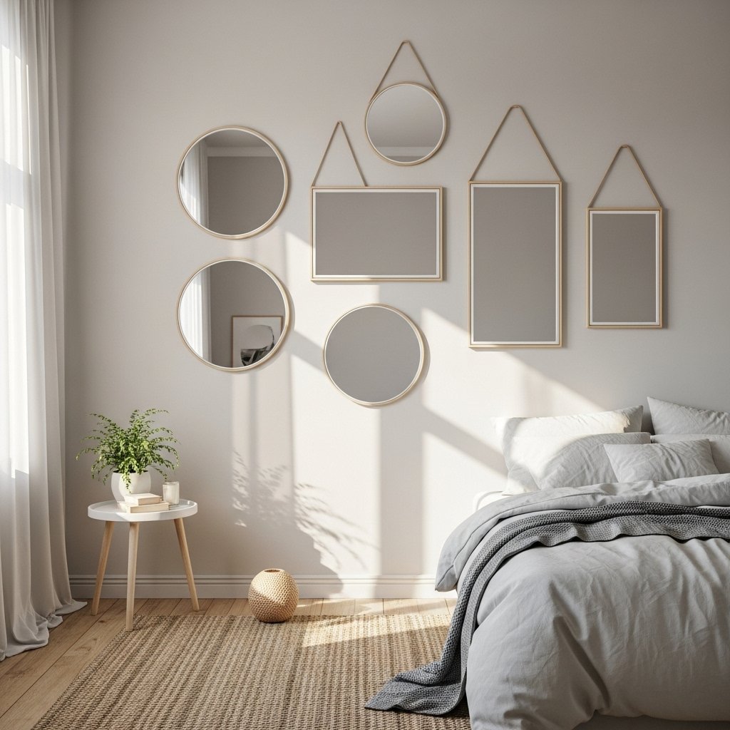 Decorative mirrors serve both practical and aesthetic purposes in simple room décor. A mirror reflects light, making the room feel larger and brighter. Choose mirrors with thin frames or simple shapes like round, square, or rectangular. Mirrors can also act as a subtle statement piece without overwhelming the minimalist design. This idea is perfect for small rooms or apartments that need a sense of space.