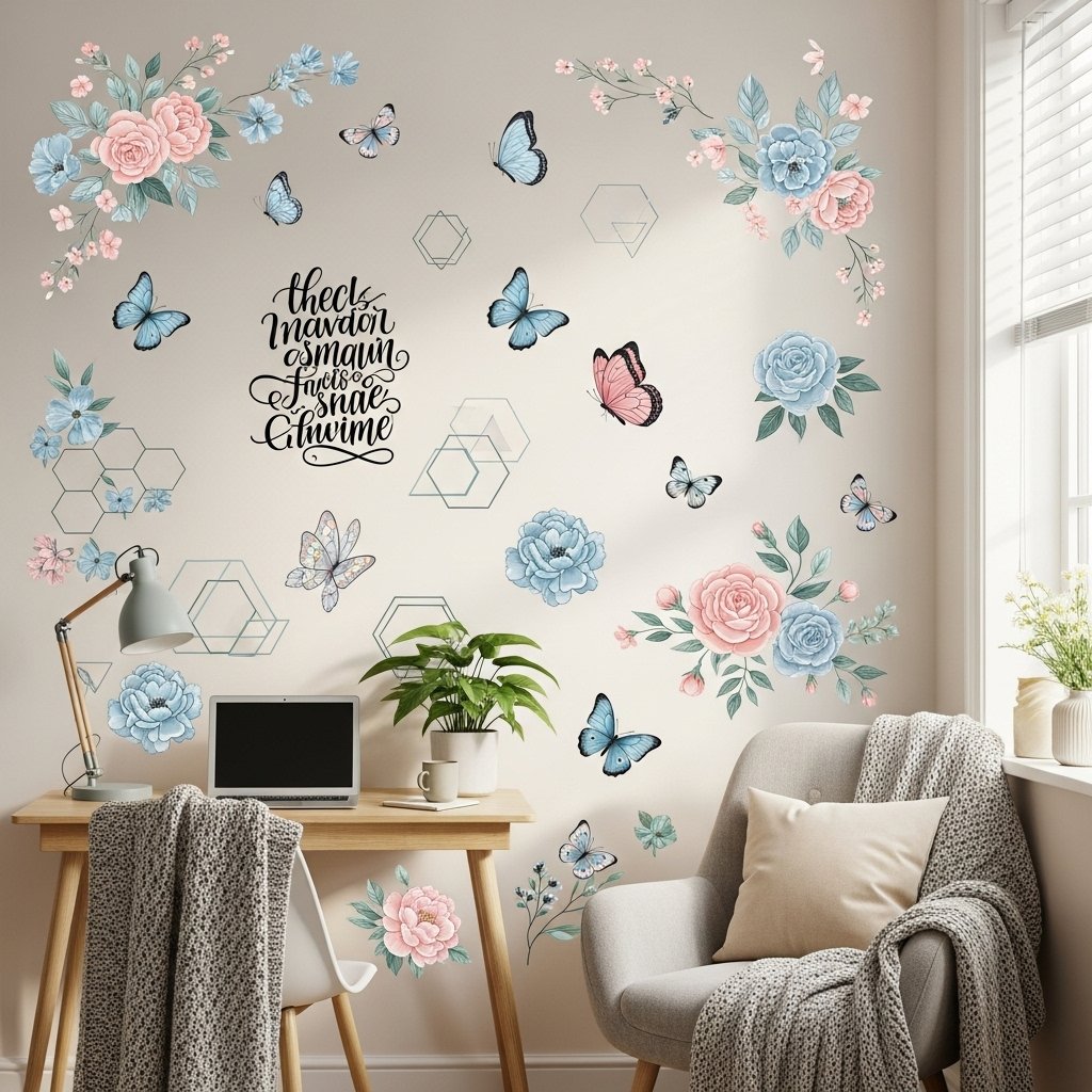 Wall stickers are a quick, renter-friendly way to enhance your room without paint or tools. Designs like quotes, floral patterns, butterflies, or geometric shapes are easy to apply and remove. They offer instant transformation and can be updated whenever your style changes. Stickers work well in teen rooms, nurseries, study corners, and minimalist spaces. This idea is affordable yet stylish, perfect for anyone who loves quick décor.