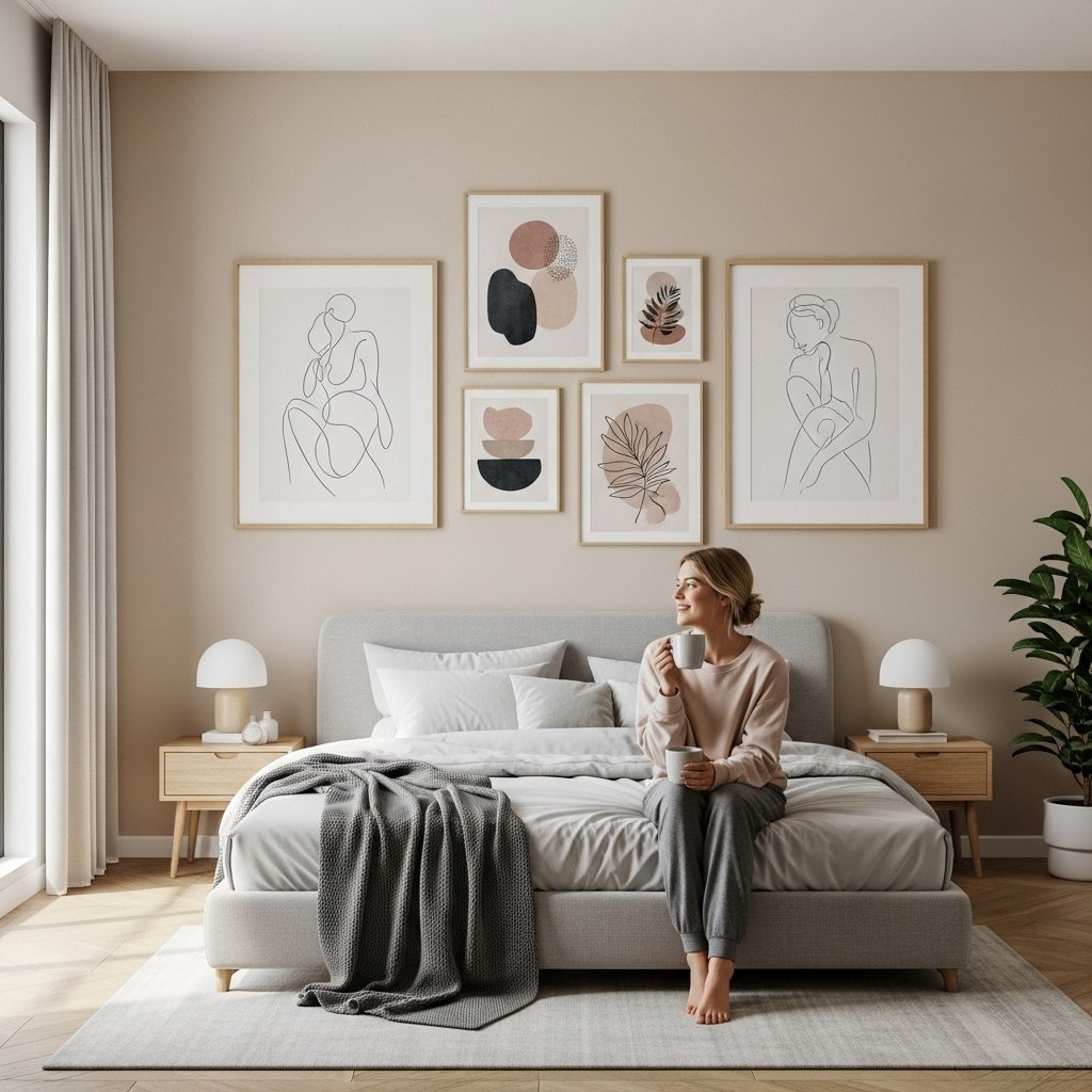 Wall art adds personality without complicating the room décor. Choose pieces with minimal designs such as line art, soft abstract prints, or simple couple-themed artwork. A small gallery wall above the bed can also add charm without overwhelming the space. Stick to a consistent color palette for a clean look. Simple artwork brings elegance and meaning to the bedroom.