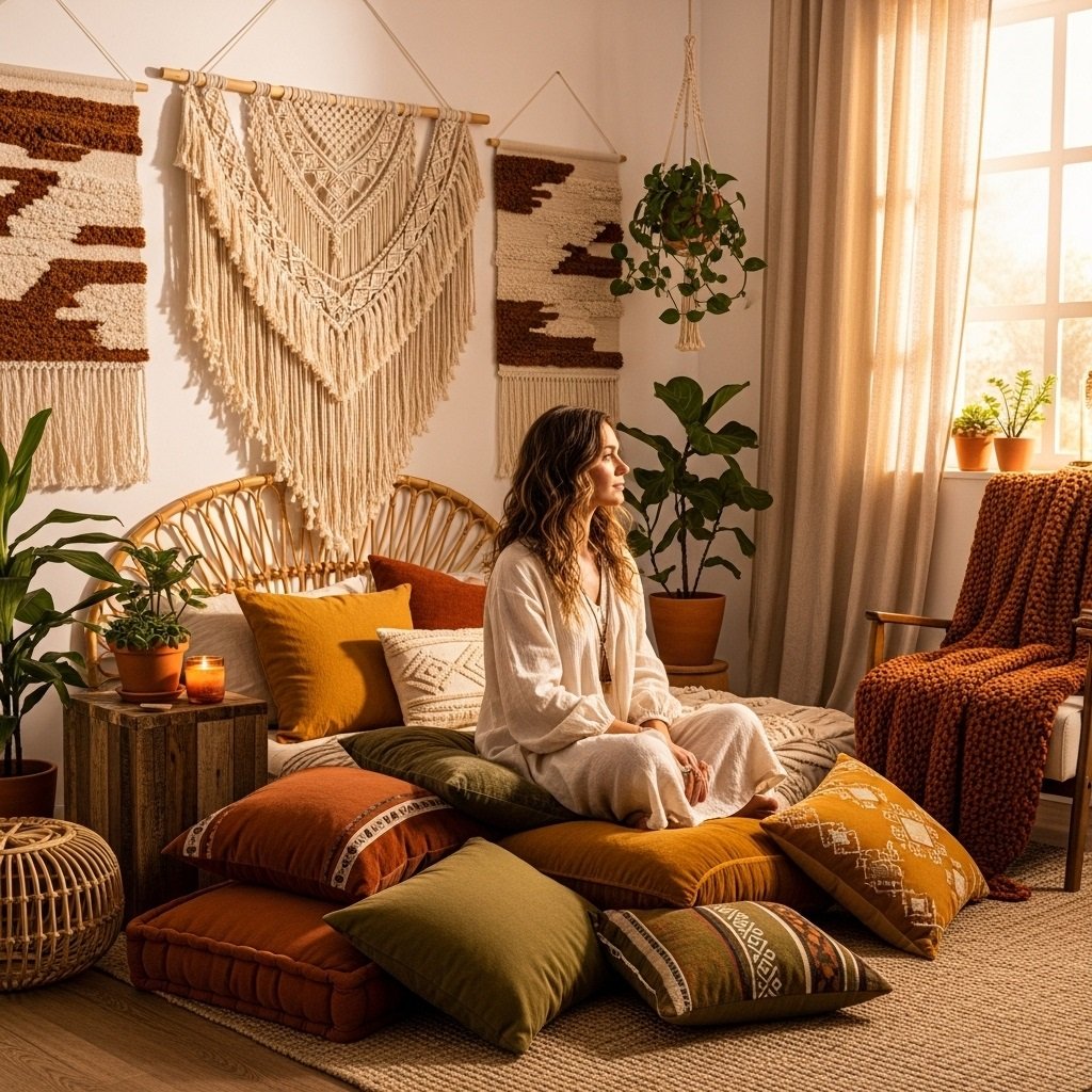 Boho décor is perfect for anyone who loves warm, earthy tones and artistic touches. Incorporate woven baskets, textured pillows, macramé wall hangings, and rattan furniture to create a cozy bohemian vibe. Natural materials like wood and cotton bring warmth and authenticity. Layering rugs and adding floor cushions help complete the relaxed look. This décor idea feels free-spirited, comfortable, and effortlessly stylish.