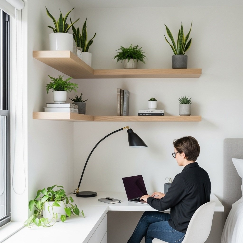 Creating a modern workspace in your room is essential for productivity and comfort. A sleek desk, ergonomic chair, and minimal accessories make the area functional and visually appealing. Adding plants, organizers, and a stylish lamp enhances the workspace atmosphere. Consider floating shelves for storing books and décor pieces without taking up floor space. This setup is ideal for students, remote workers, or creatives.