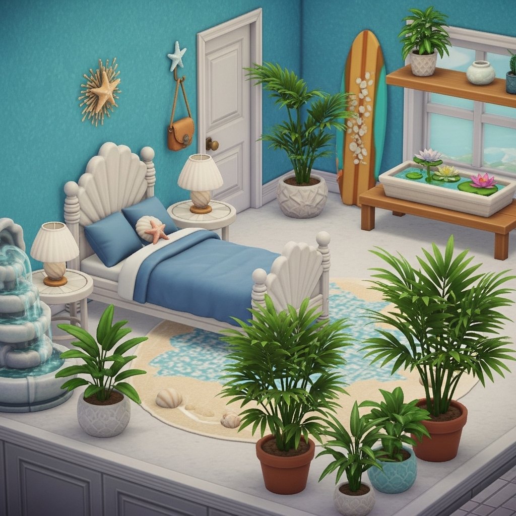 A beach or tropical-themed room brings vacation vibes directly into your ACNH home. Use items like palm trees, beach chairs, and ocean-inspired decorations. Bright colors such as blue, yellow, and white enhance the tropical atmosphere. Adding shells and water-themed items makes the room feel more realistic. This design is perfect for players who want a refreshing and summer-inspired interior.