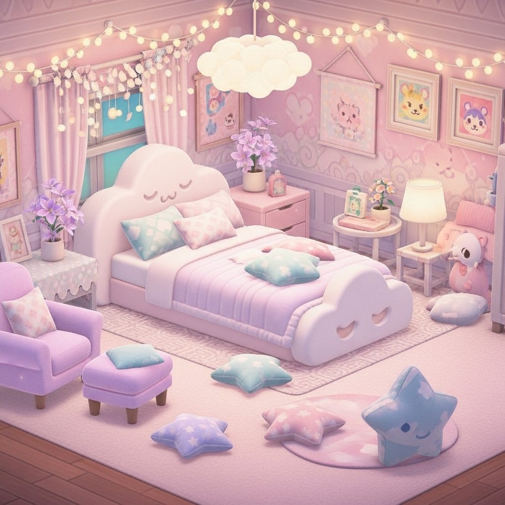 A pastel-themed bedroom is perfect for players who love soft and dreamy aesthetics. Use colors like baby pink, lavender, mint, and light blue to create a gentle atmosphere. Furniture such as cloud beds, plush chairs, and cute rugs enhances the overall charm. Adding fairy lights or small decorative items gives the room a magical feel. This design is especially popular among players who enjoy cute and aesthetic interiors.