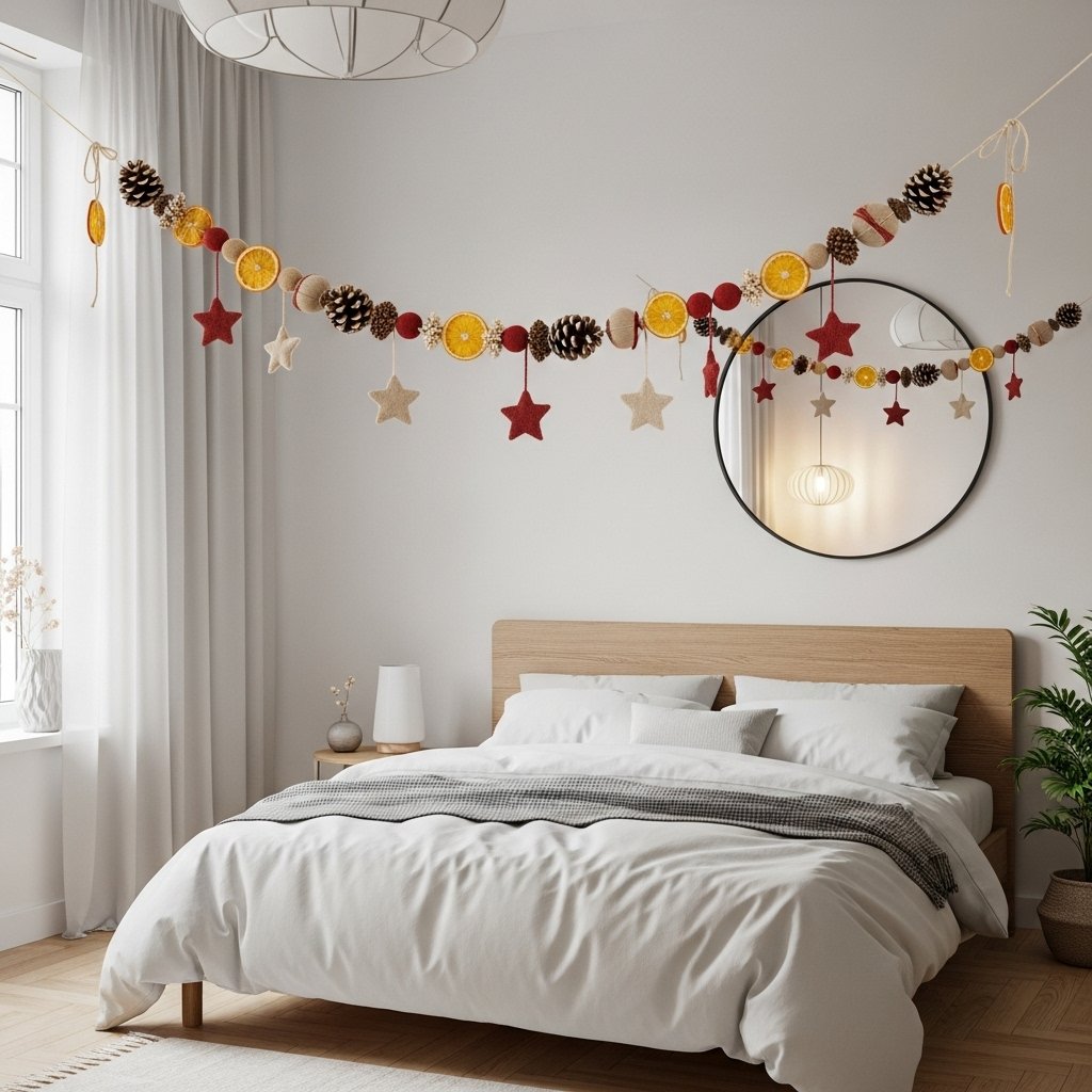 DIY Christmas garlands add texture and warmth to your room decor. You can make garlands using paper stars, dried citrus slices, pinecones, or fabric scraps. Neutral colors like beige, white, and muted reds enhance the aesthetic Christmas vibe. Hang the garland over mirrors, windows, or bed frames for maximum impact. This simple DIY project instantly adds a cozy holiday feel to your room.