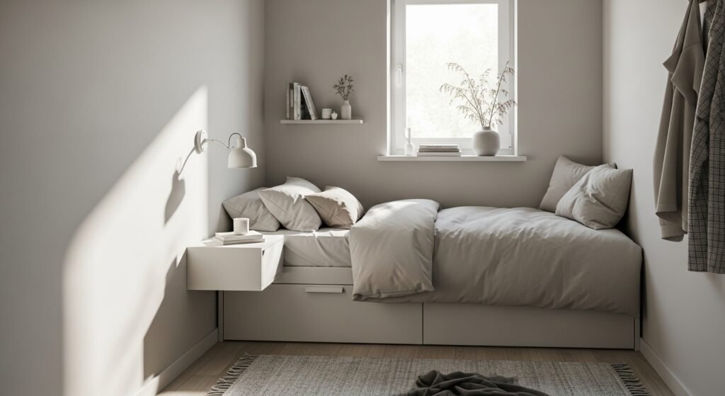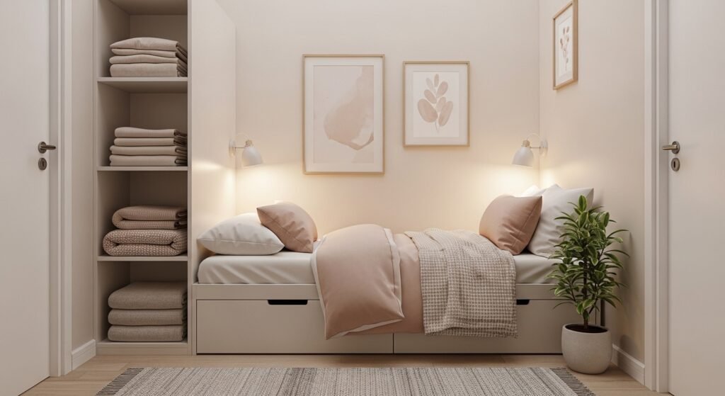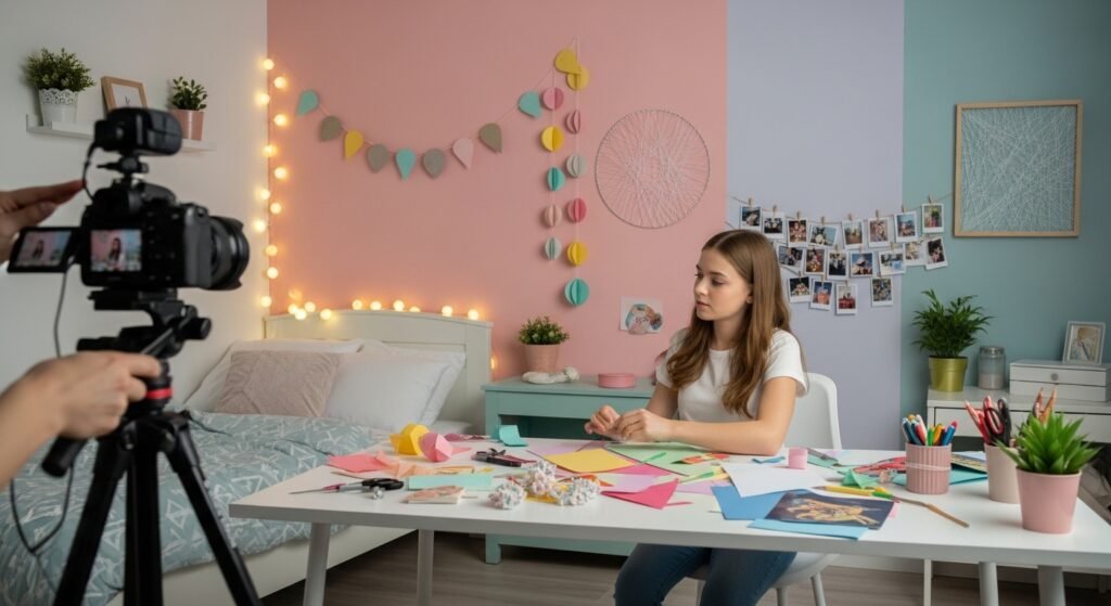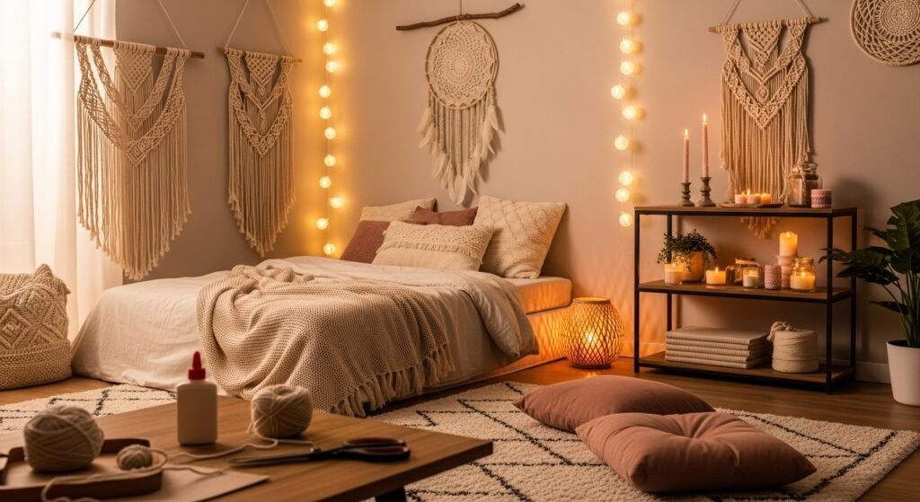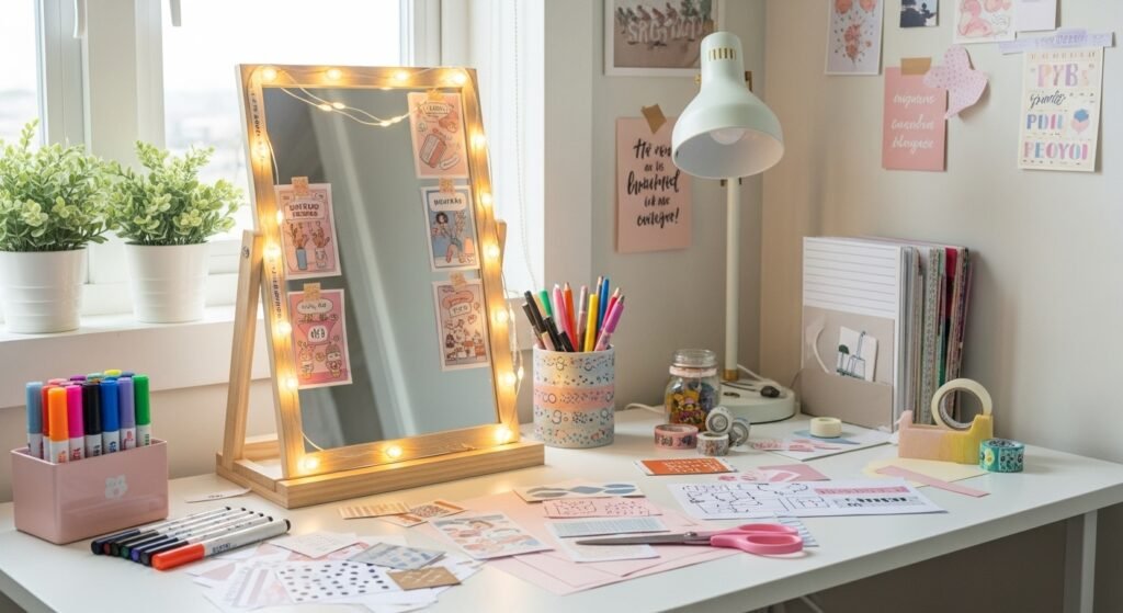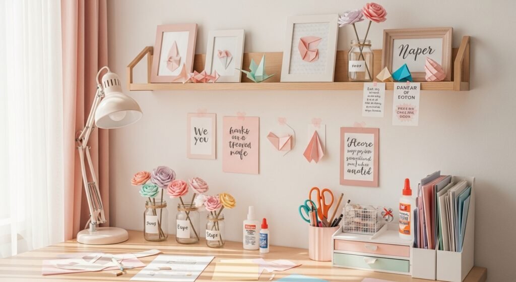 Wall shelves are another beautiful and practical option. Floating shelves can hold candles, small plants, books, or decorative objects. They not only add style but also give you extra storage space. Keeping the arrangement neat and minimal helps maintain that soft, aesthetic vibe.