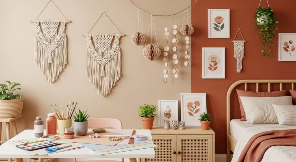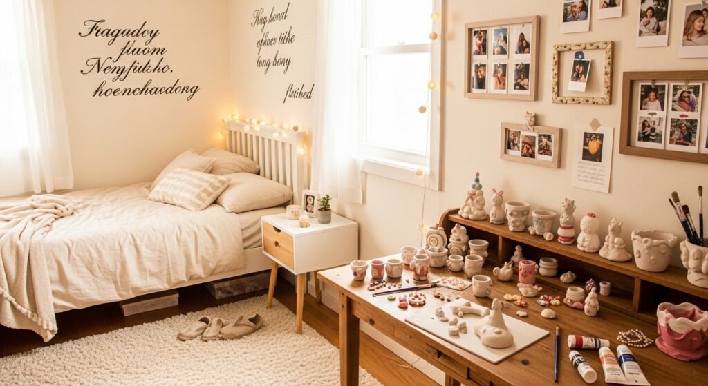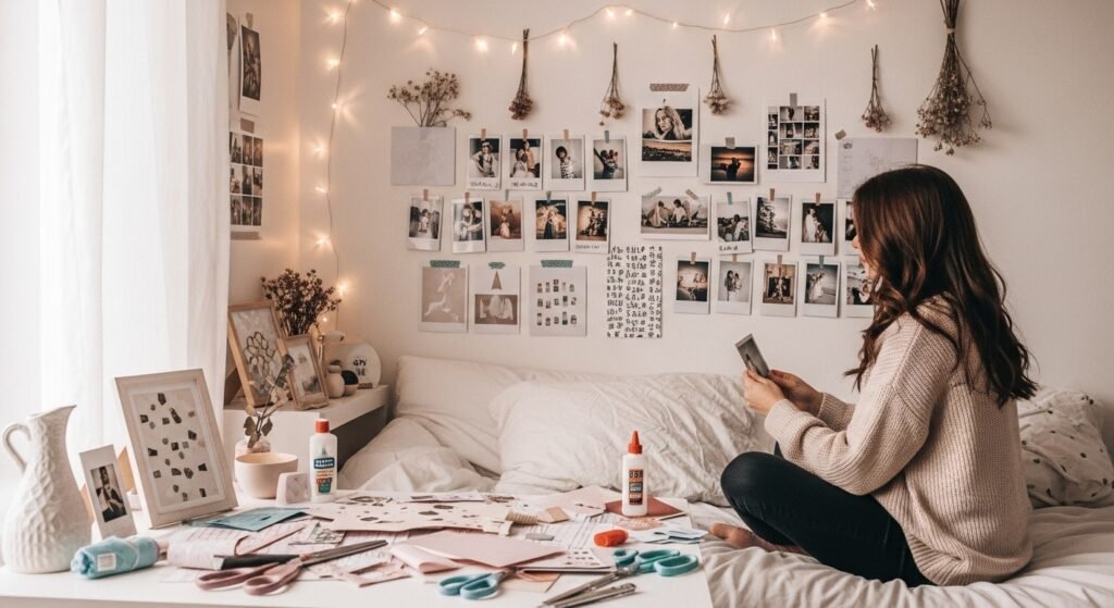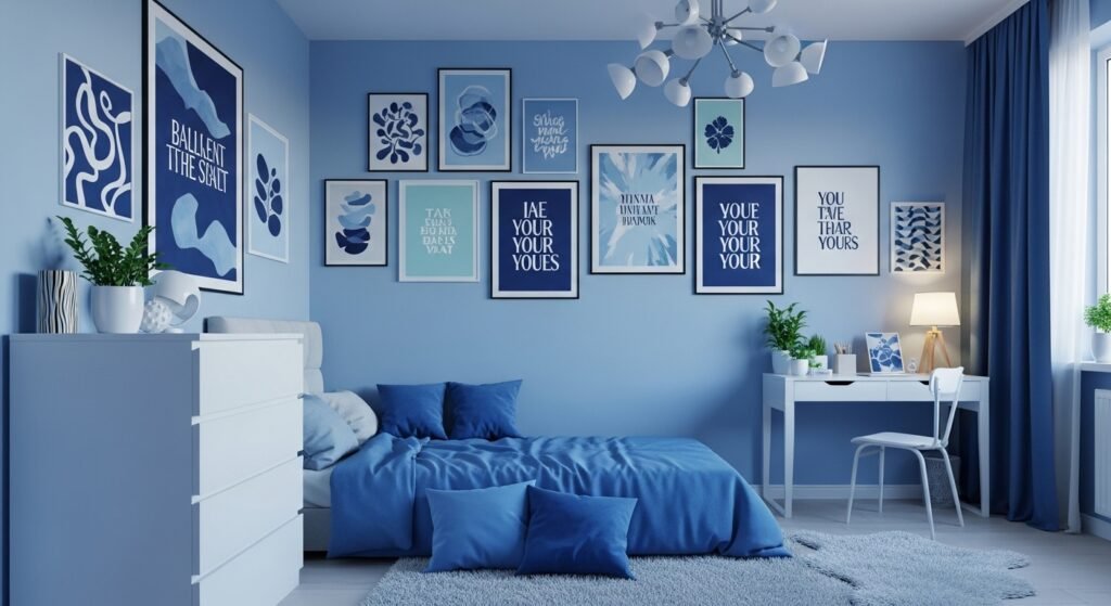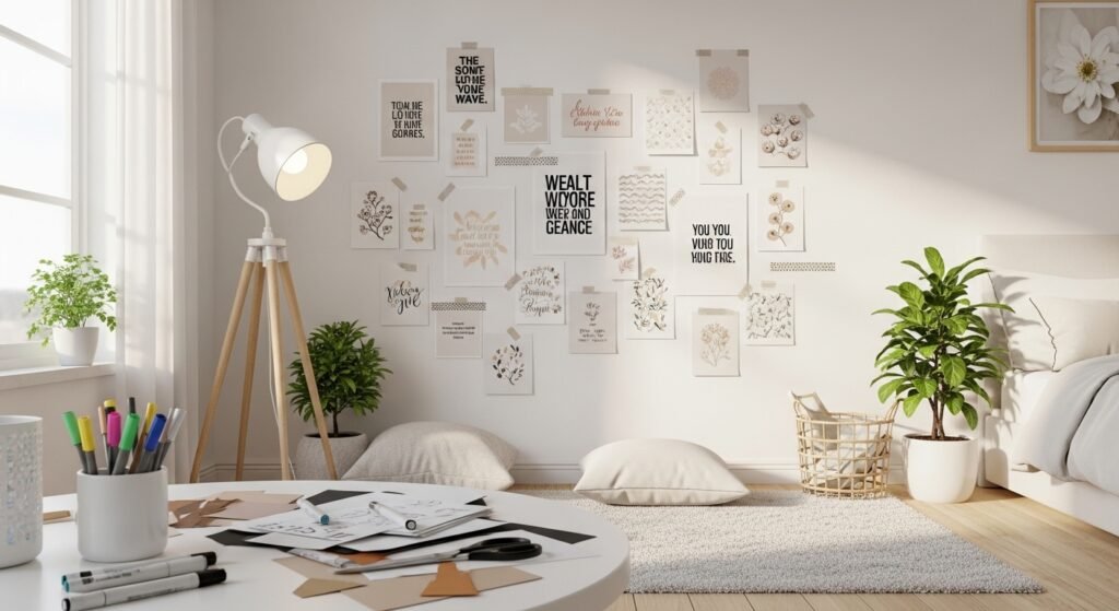 One of the easiest ideas is creating a gallery wall. Mix framed art prints, personal photos, and small quotes that reflect your personality. Try to choose a color theme so everything looks balanced and pleasing to the eye. When arranged carefully, even small frames can create a big visual impact.