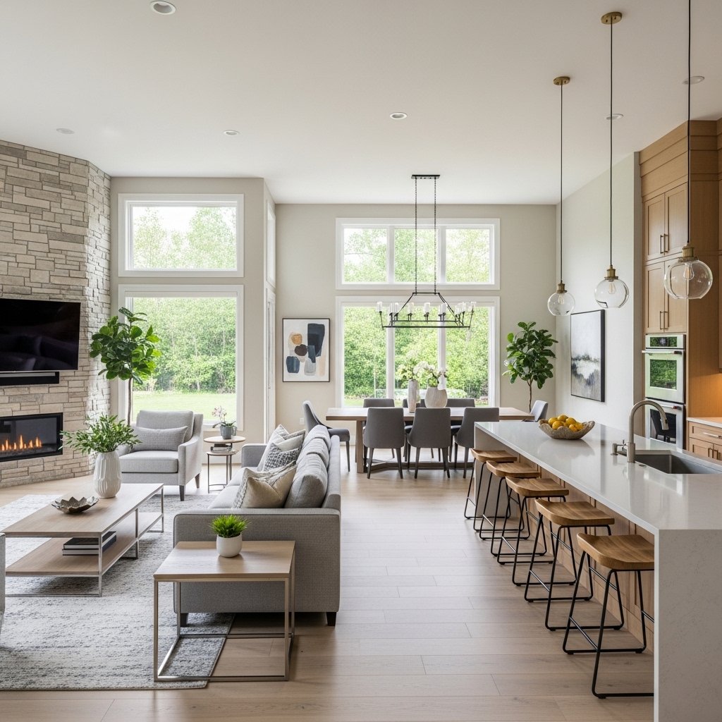 One of the most popular features of American home interior design is the open concept living room. This layout connects the living room, dining area, and kitchen into one large, flowing space. It creates a sense of openness and allows natural light to spread throughout the home. Families love this design because it encourages interaction and togetherness. To enhance this style, use consistent color tones and minimal partitions for a clean and unified look.