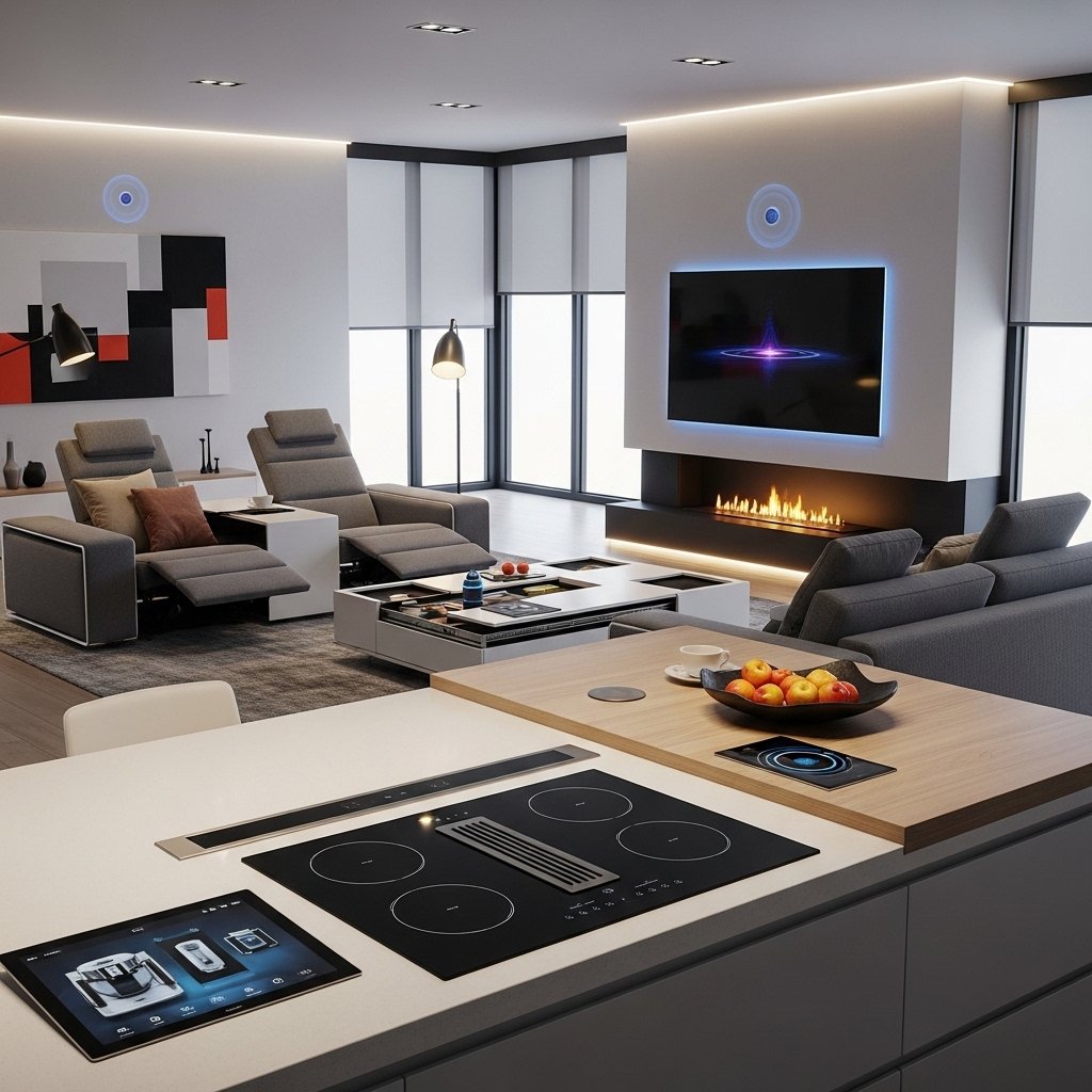 Modern American home interior design increasingly focuses on smart technology and functionality. Smart lighting, automated thermostats, and voice-controlled systems are becoming common features. Furniture is designed to be space-saving and multifunctional. Clean layouts ensure that technology blends seamlessly into the interior design. This approach creates a convenient, efficient, and future-ready home environment.