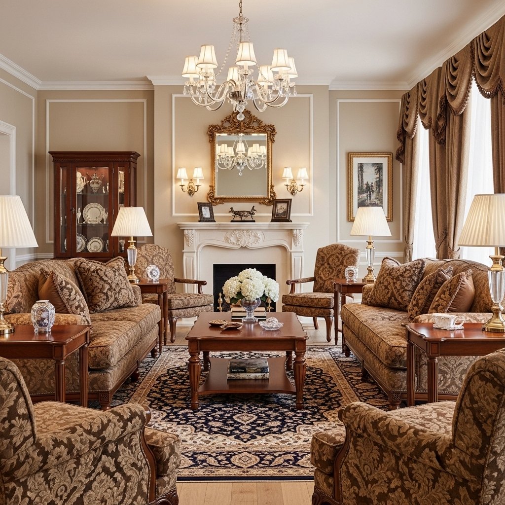 Traditional American interiors are inspired by timeless elegance and symmetrical designs. This style includes rich wooden furniture, patterned fabrics, and decorative moldings. Warm color palettes such as deep browns, creams, and golds are commonly used. The furniture is often large and comfortable, creating a formal yet inviting atmosphere. This design style is perfect for those who appreciate heritage and classic beauty.