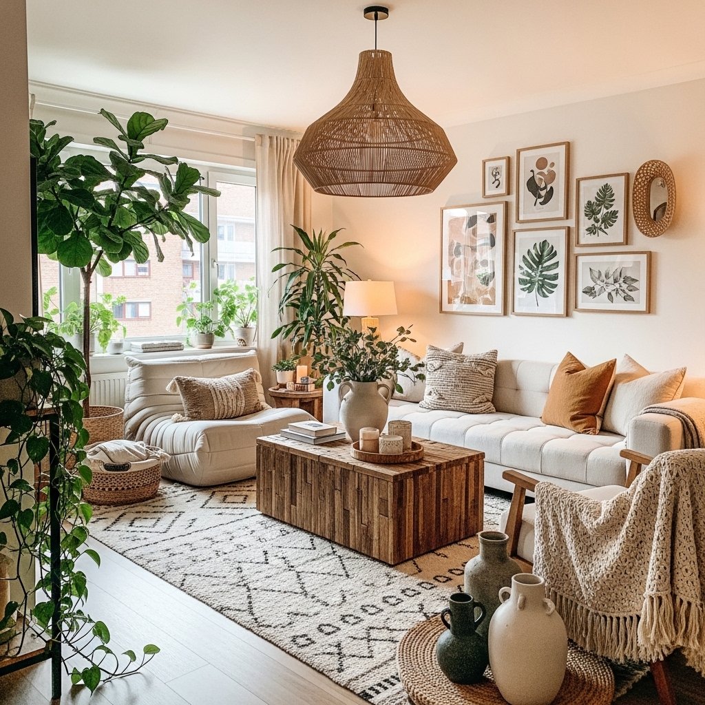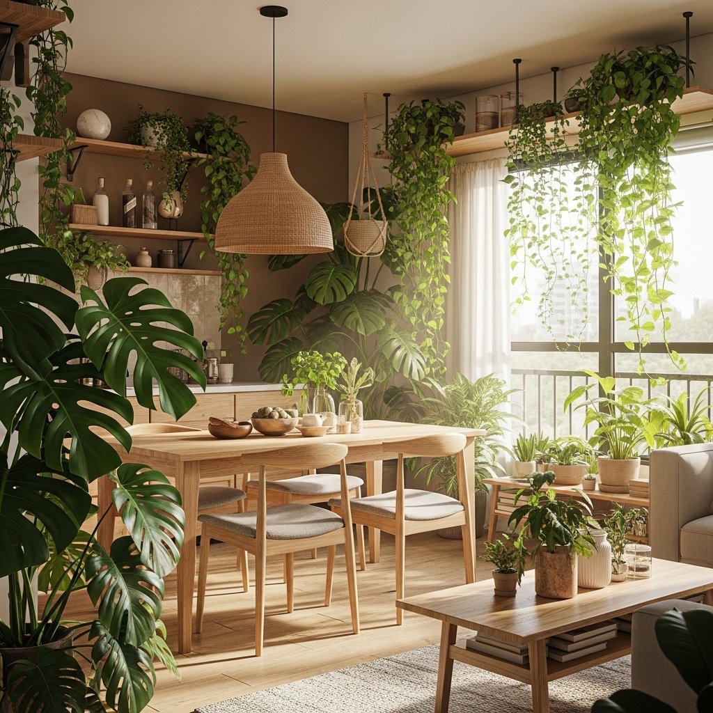 A nature-inspired aesthetic brings the outdoors inside through plants and natural materials. Indoor plants like monstera, snake plants, and pothos improve air quality and visual appeal. Wooden furniture and stone textures enhance the organic feel. Natural light is emphasized to keep the space fresh and vibrant. This style is perfect for creating a calming and healthy environment.