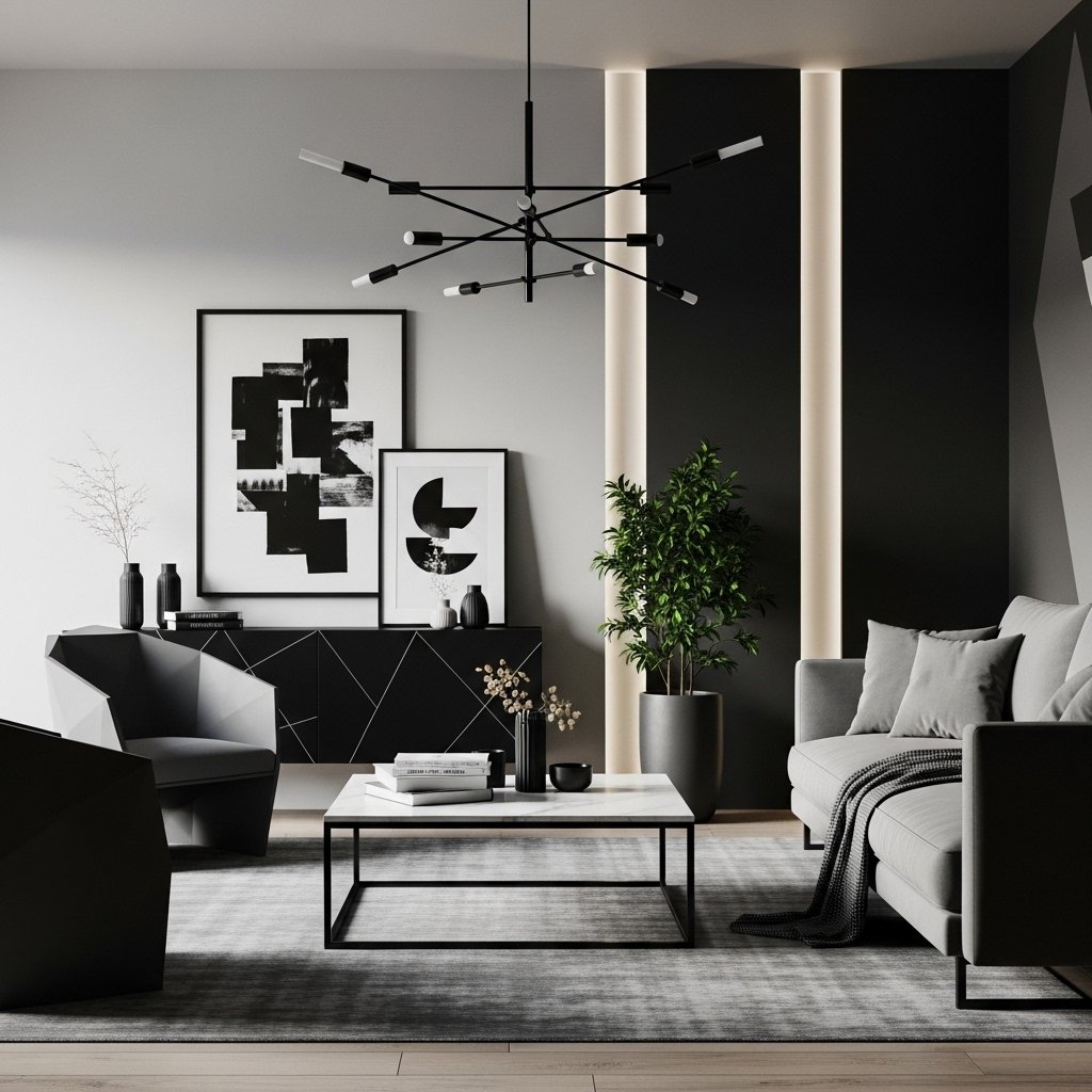 This aesthetic focuses on bold contrast and modern elegance. Black accents are paired with white, gray, and beige tones for balance. Minimal furniture with strong geometric shapes defines the space. Lighting is used strategically to highlight key design features. This style is perfect for those who prefer a sleek and contemporary look.