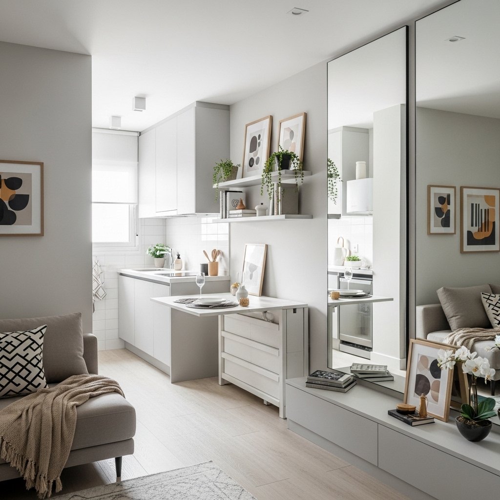 This aesthetic focuses on maximizing functionality in compact apartments. Smart furniture like foldable tables, storage beds, and wall-mounted shelves are commonly used. Light colors and mirrors help create the illusion of a larger space. The layout is carefully planned to avoid overcrowding. This style is ideal for studio apartments or urban living spaces.