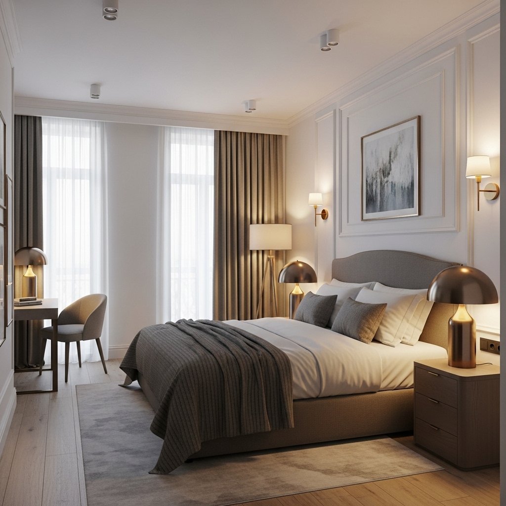 A hotel-inspired apartment brings five-star comfort into your home. Soft bedding, elegant furniture, and symmetrical layouts define this style. Neutral colors with subtle accents create a relaxing and premium feel. High-quality materials and perfect lighting elevate the entire space. This aesthetic makes everyday living feel like a luxury vacation.