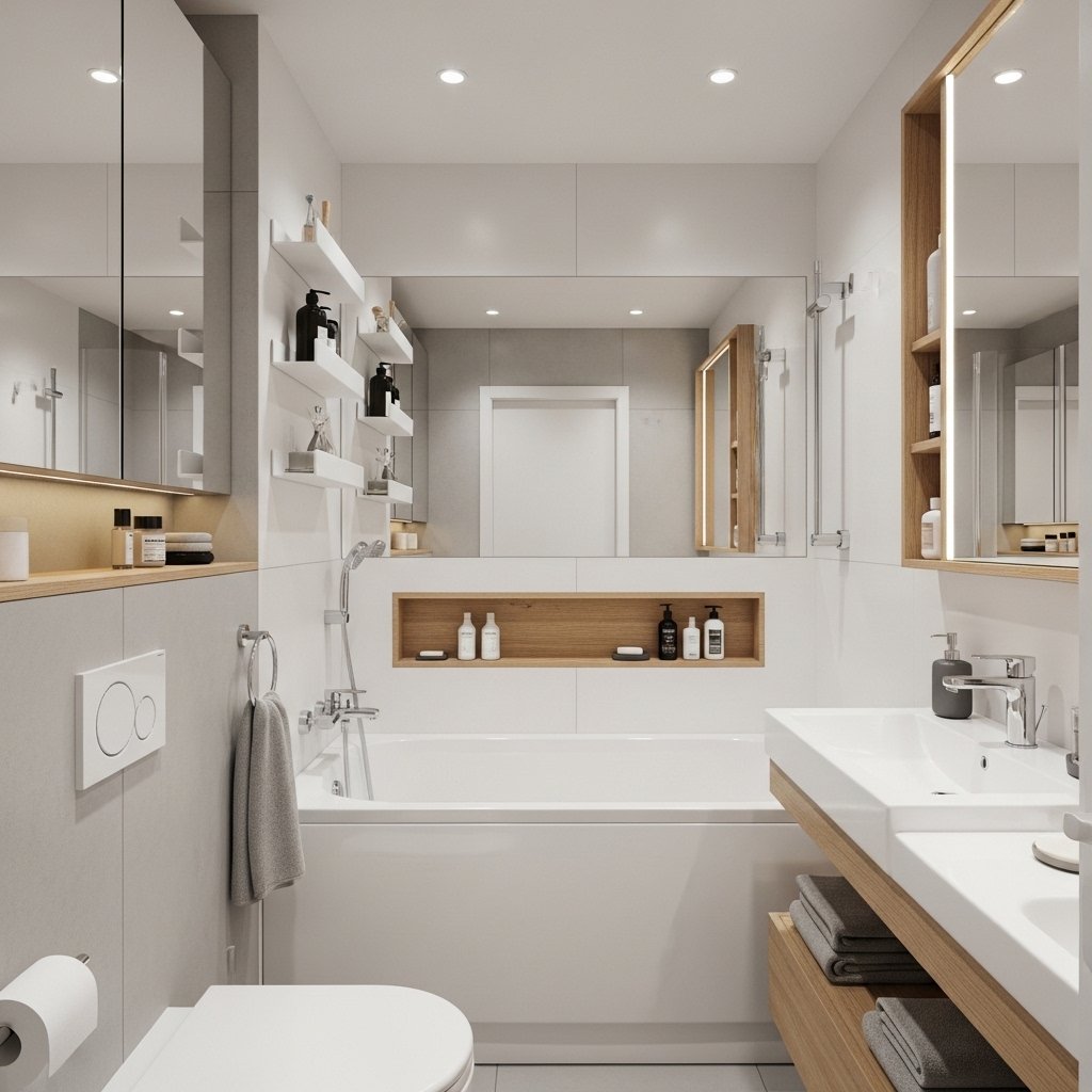 - Organize Accessories – Keep toiletries and bath items neatly arranged to maintain a clean and relaxing look.